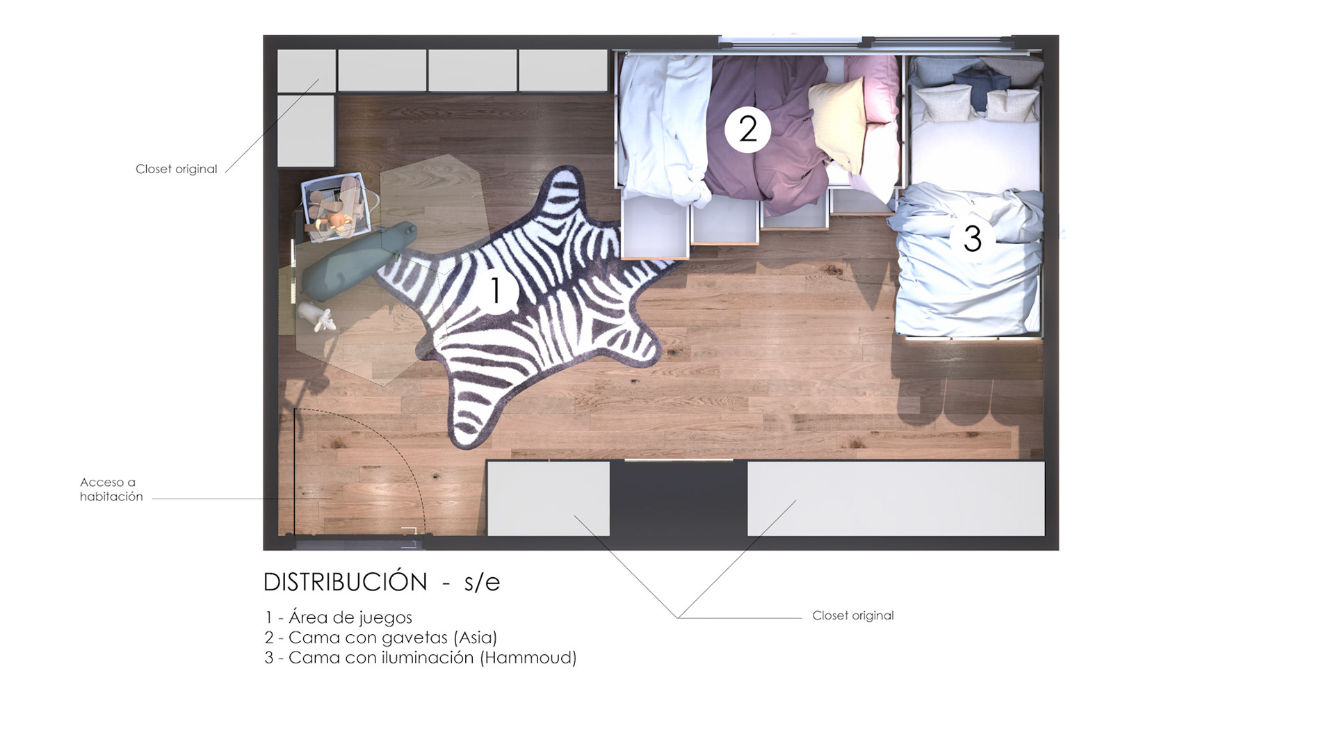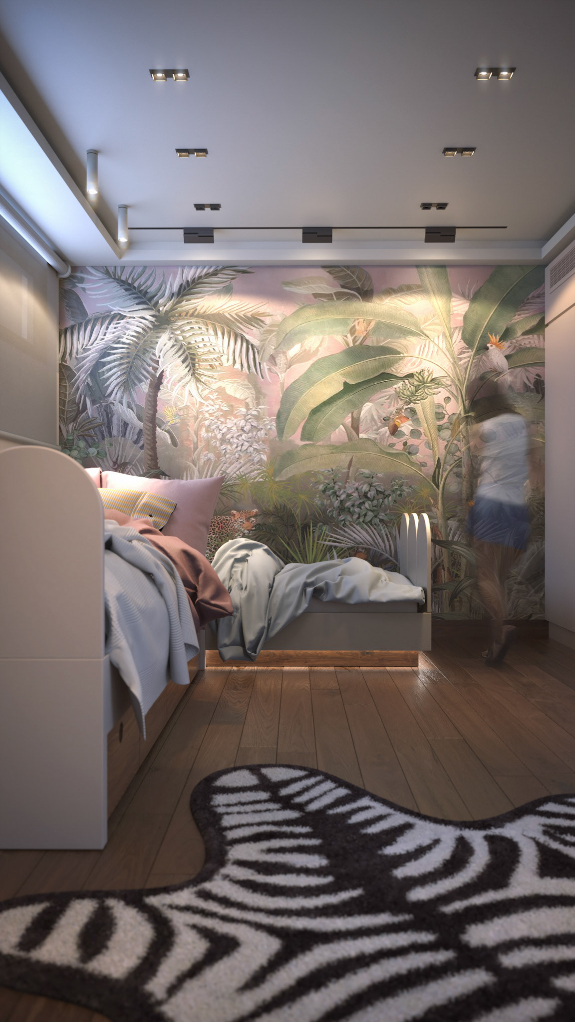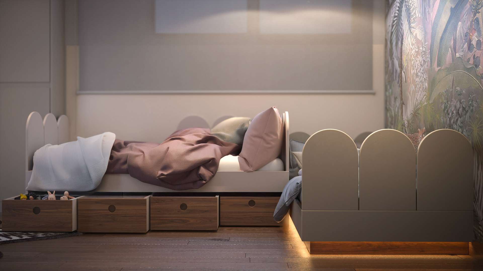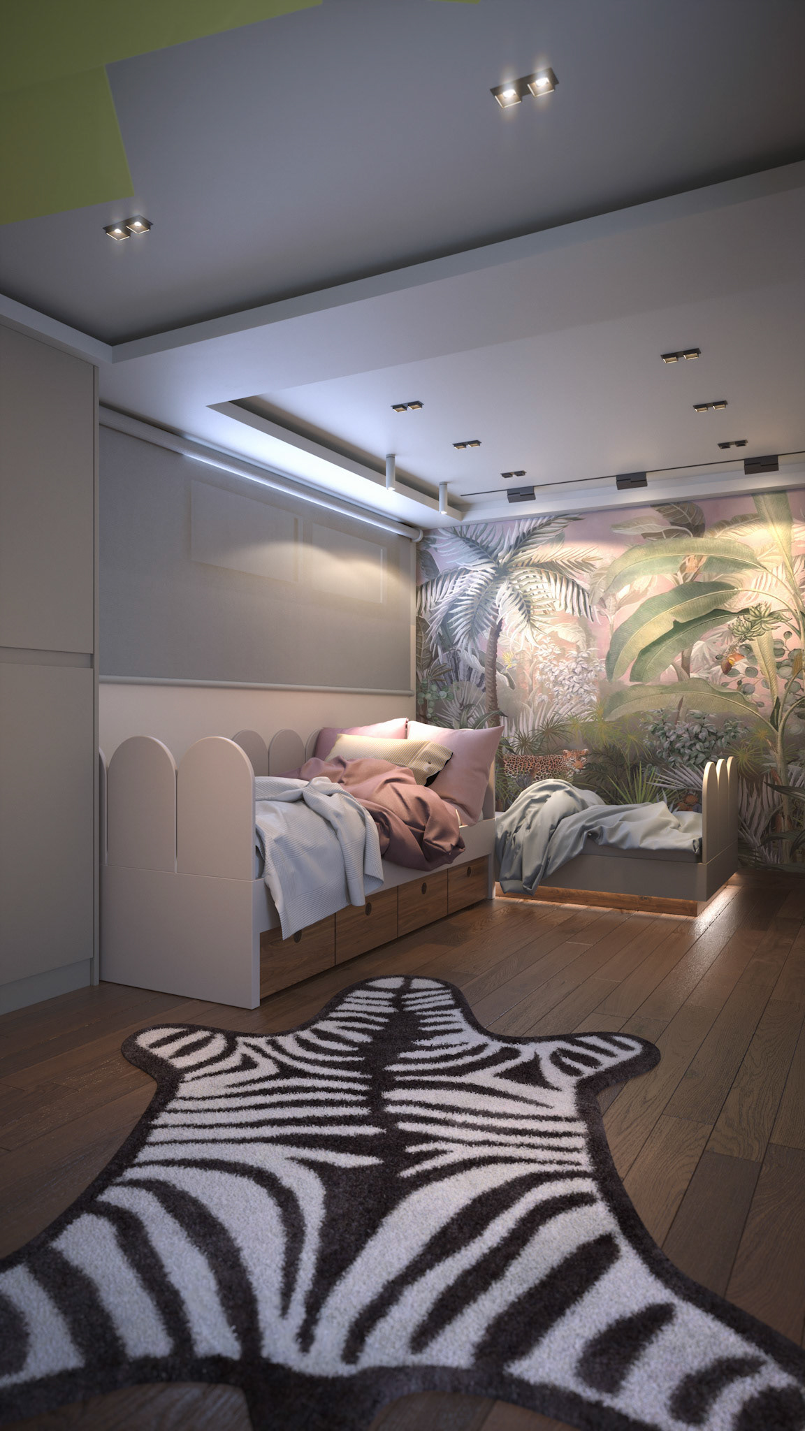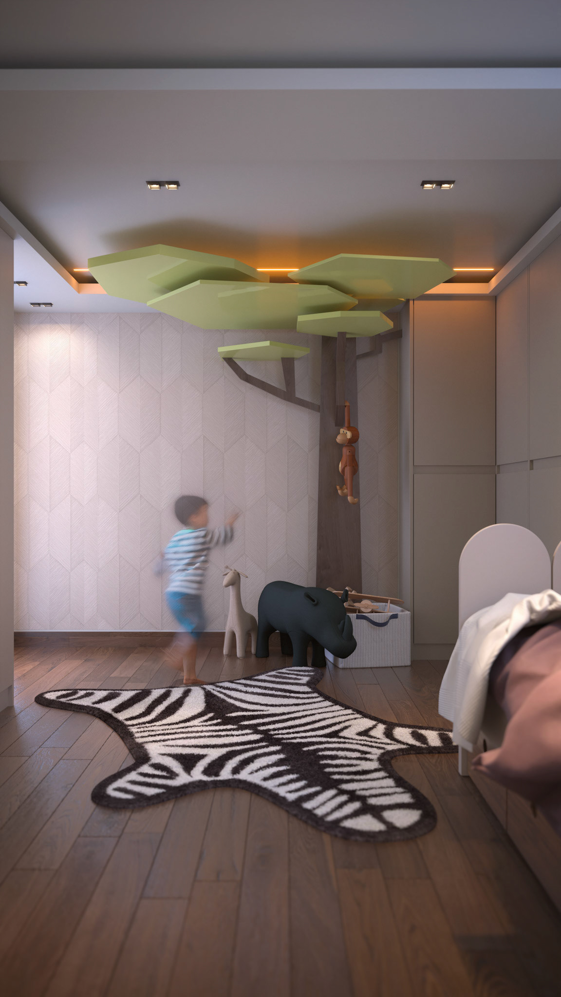 Commissioned for a newly acquired residence, A & H's Room focuses on the interior renovation of a shared children's bedroom. The brief called for a gender-neutral spatial strategy suitable for siblings of different sexes, steering clear of cliché thematic elements. The intervention included a chromatic analysis of existing furnishings and the fabrication of bespoke joinery for the beds and ceiling features. The design employs a warm tropical palette and a layered lighting plan to create a cozy atmosphere, elevating a generic residential space into a playful, custom-designed sanctuary.
