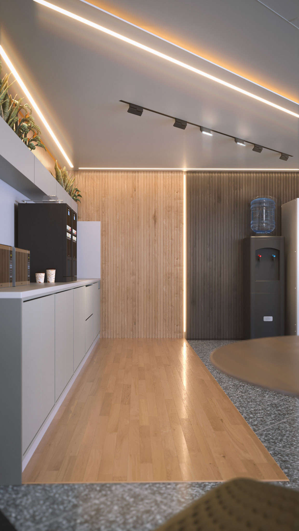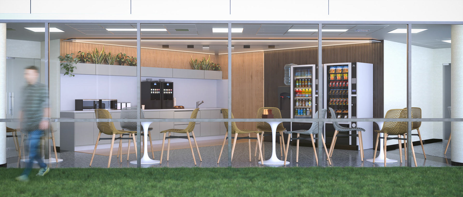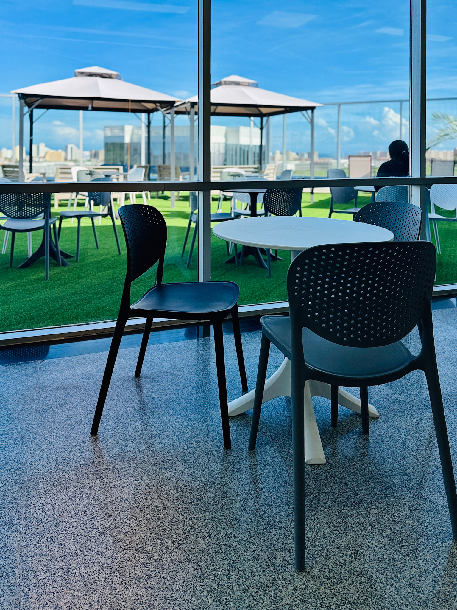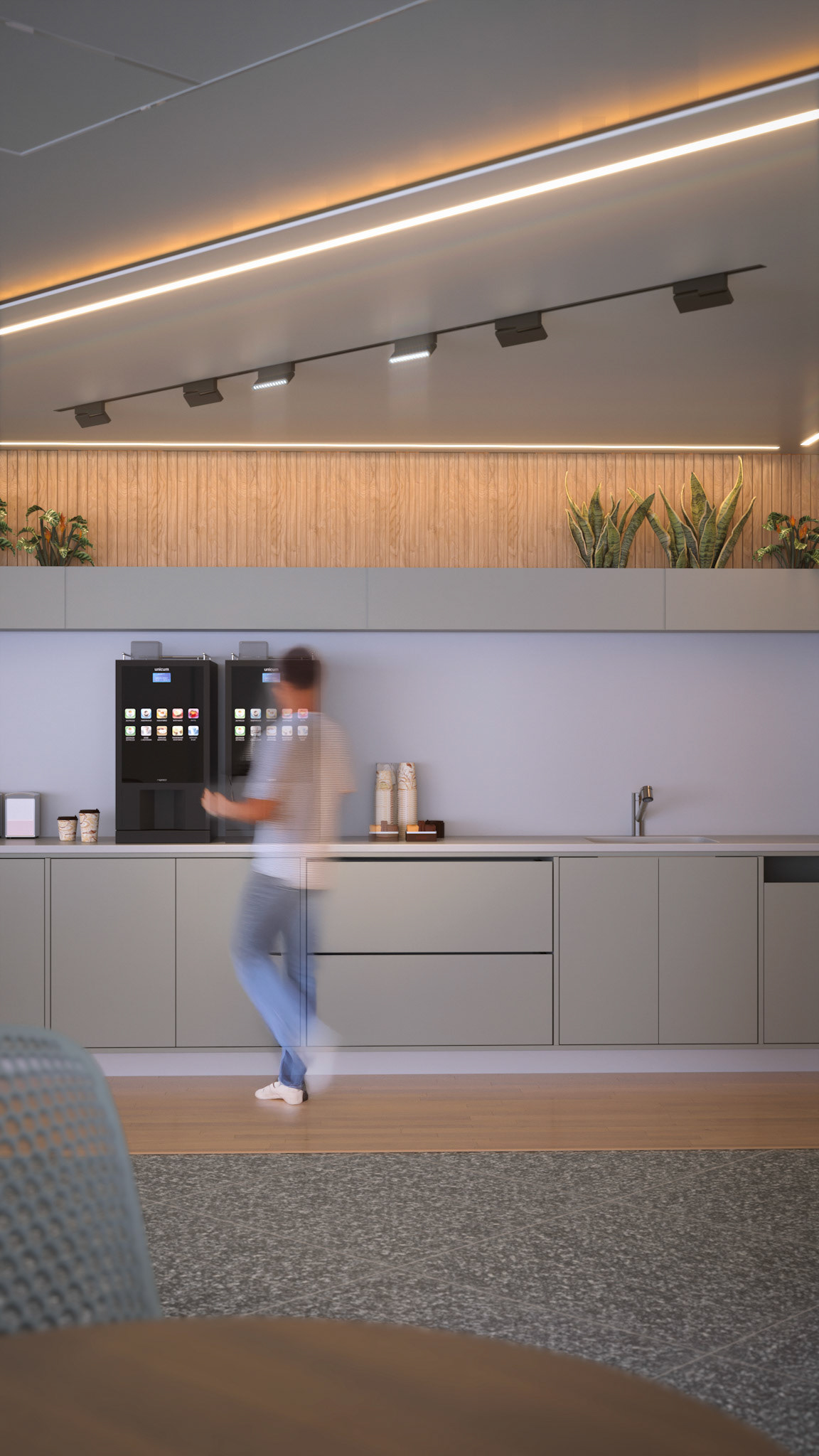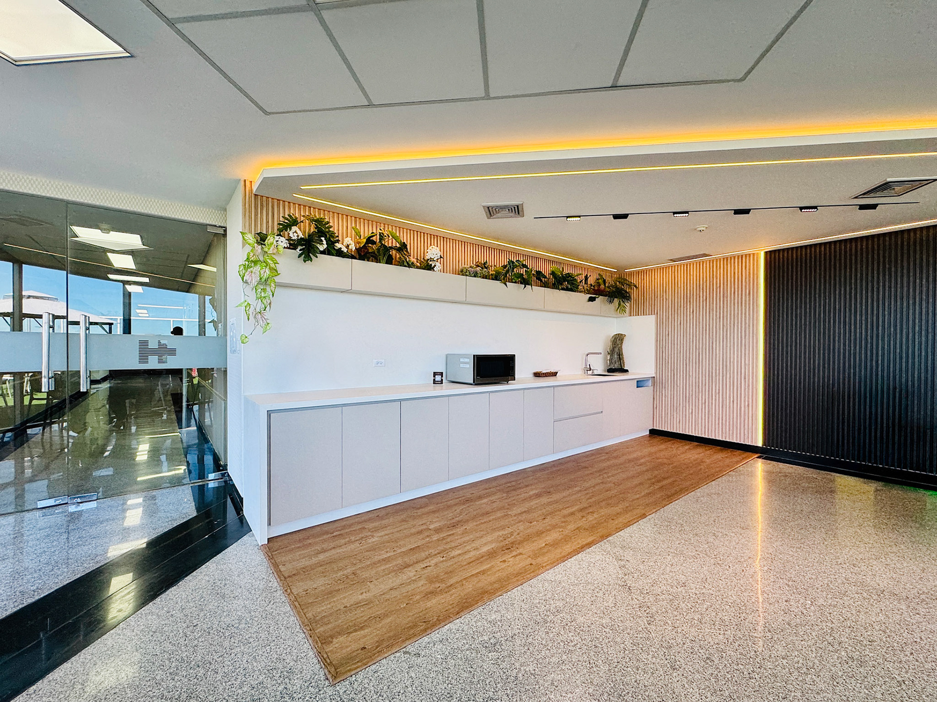 Located on the fourth level of the Hospital Clinicas del Este, Cafe Solarium is an adaptive reuse intervention transforming a residual circulation area into a vital social amenity. The project functions as a strategic distribution hub, articulating the flow between vertical circulation nodes, the inpatient ward, and the exterior "Solarium" terrace. Architecturally, the design prioritizes a human-centric approach to healthcare environments. By introducing a material palette of warm woods and a curated, soft lighting strategy, the intervention counteracts the clinical sterility of the hospital, providing a comforting sanctuary for patients' families.