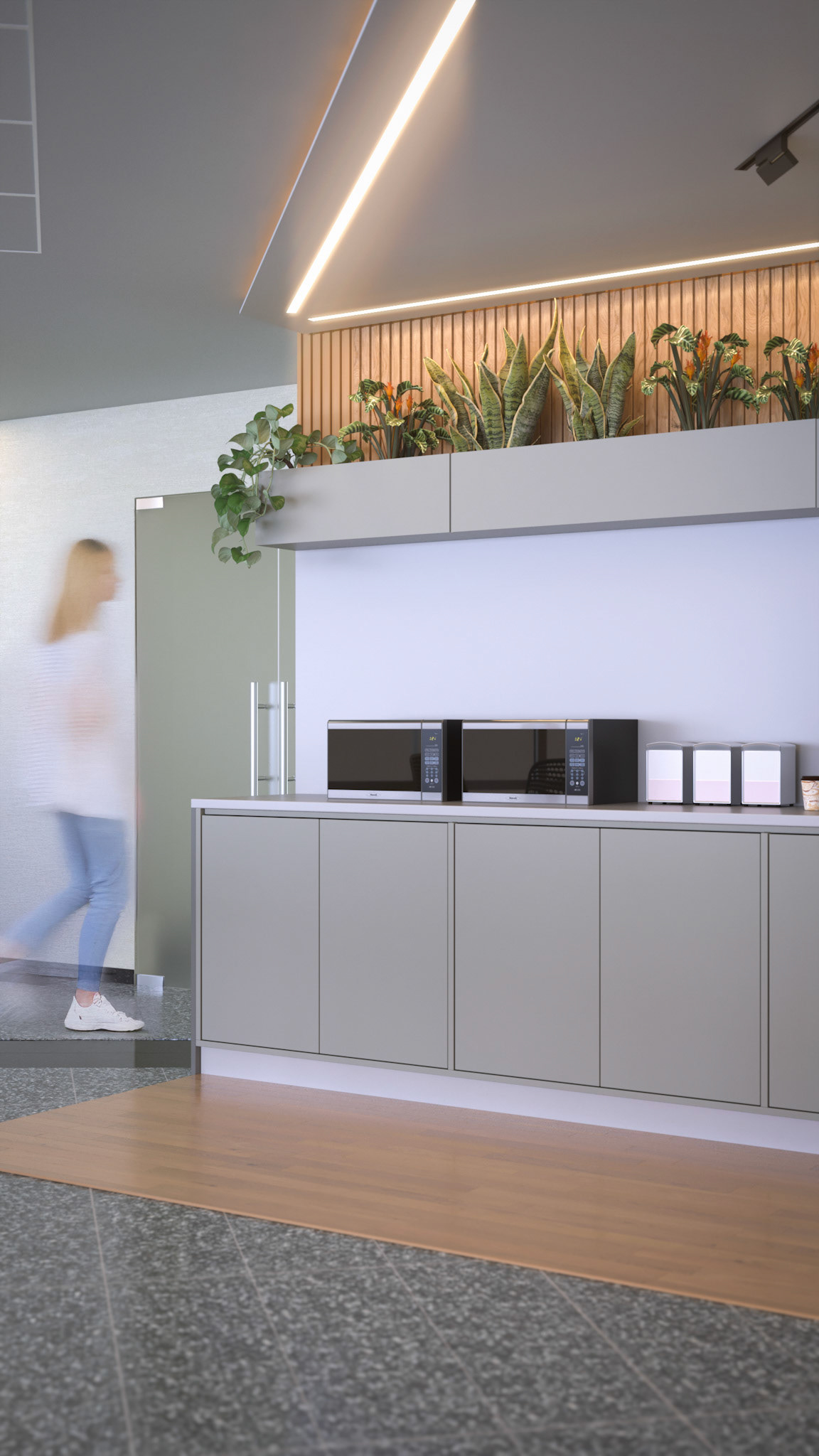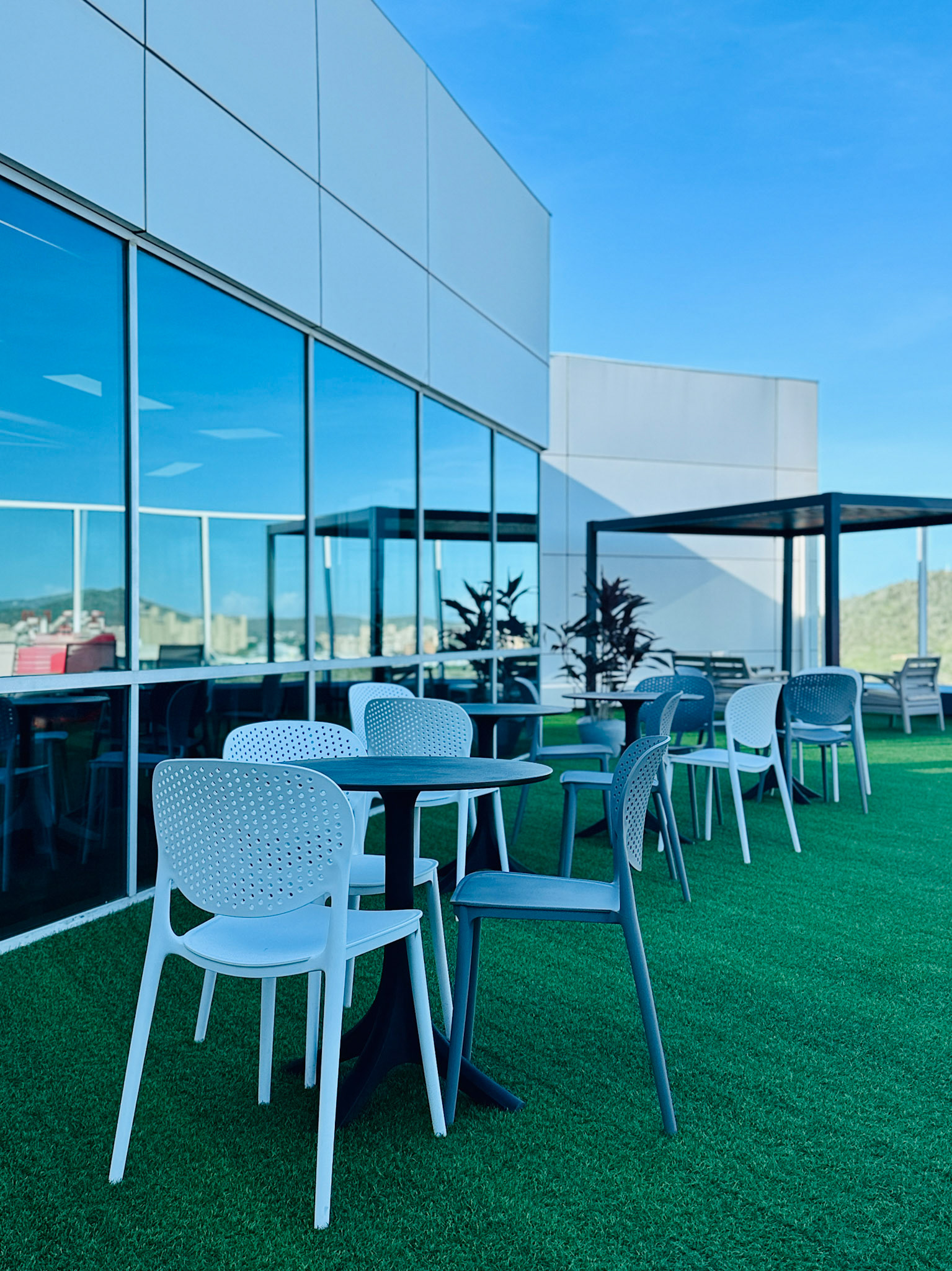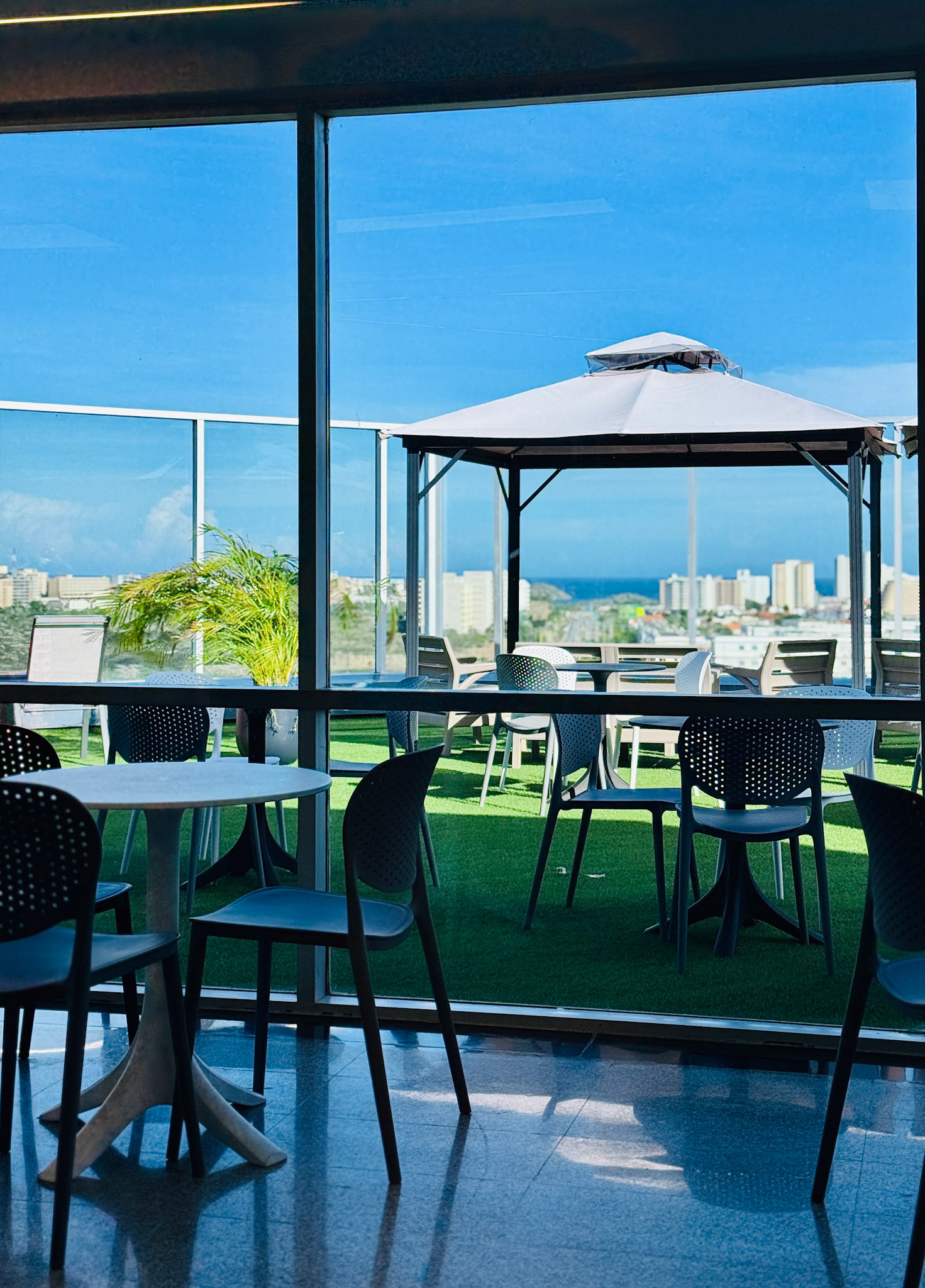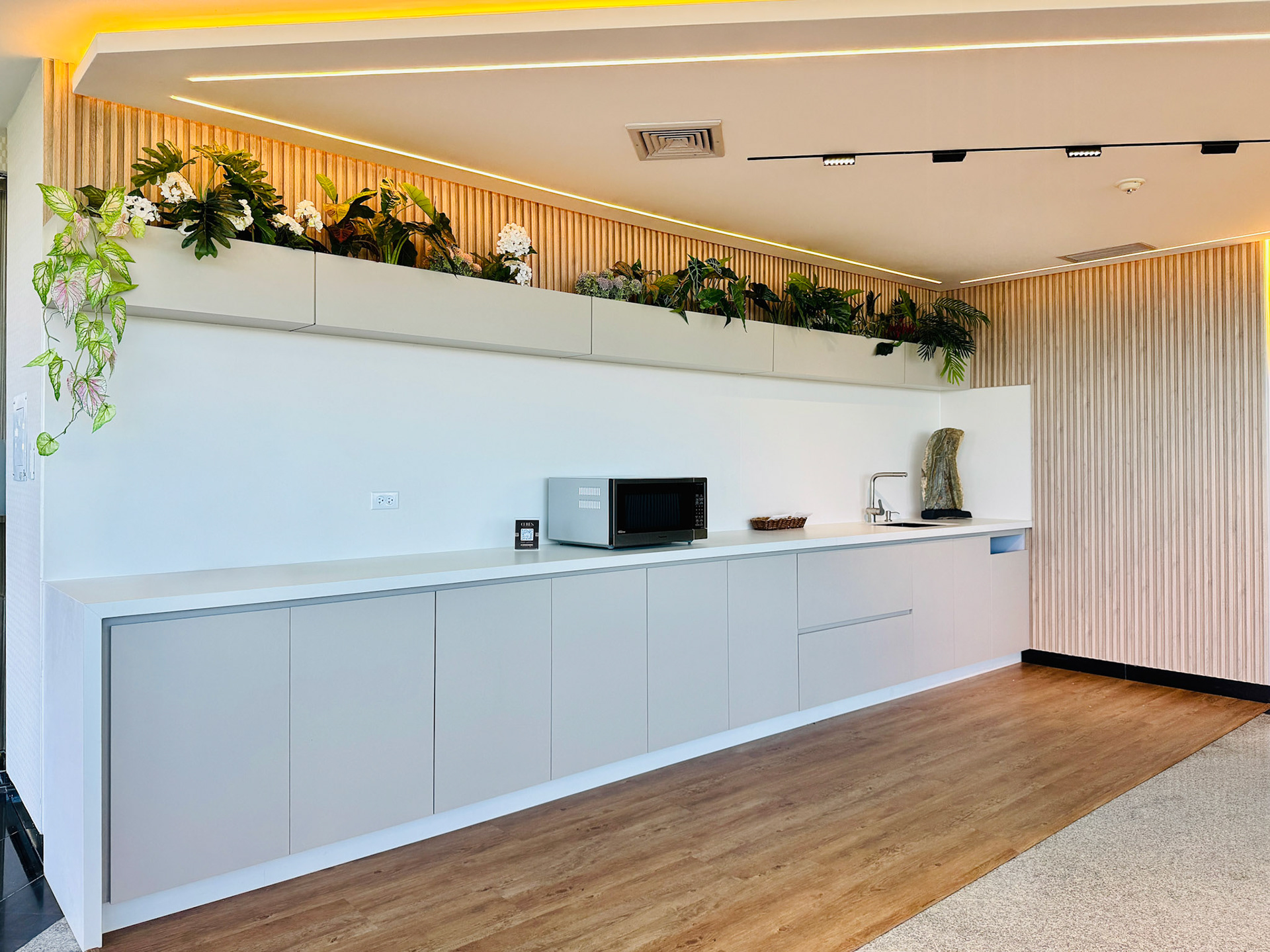 Located on the fourth level of the Hospital Clinicas del Este, Cafe Solarium is an adaptive reuse intervention transforming a residual circulation area into a vital social amenity. The project functions as a strategic distribution hub, articulating the flow between vertical circulation nodes, the inpatient ward, and the exterior "Solarium" terrace. Architecturally, the design prioritizes a human-centric approach to healthcare environments. By introducing a material palette of warm woods and a curated, soft lighting strategy, the intervention counteracts the clinical sterility of the hospital, providing a comforting sanctuary for patients' families.