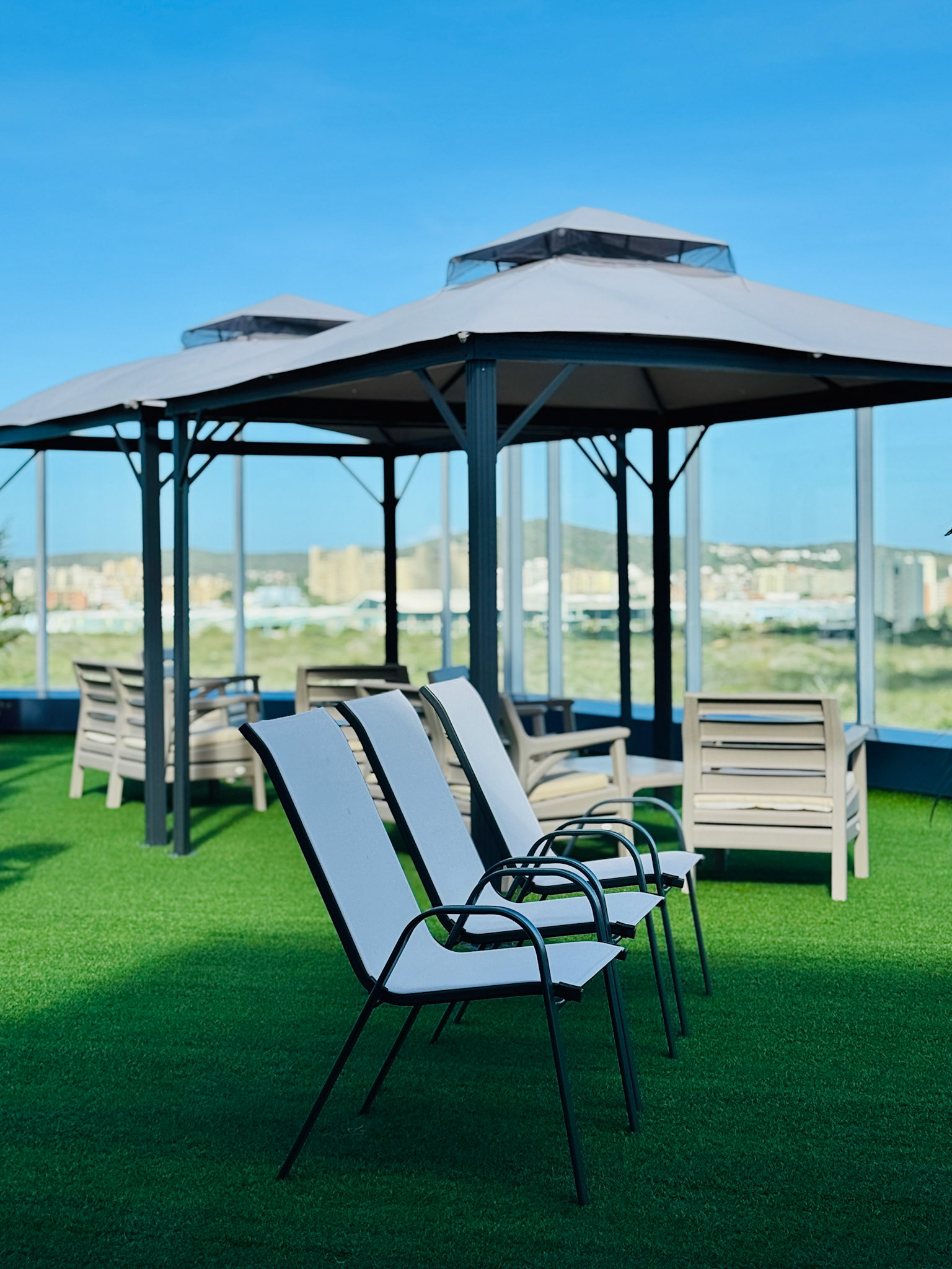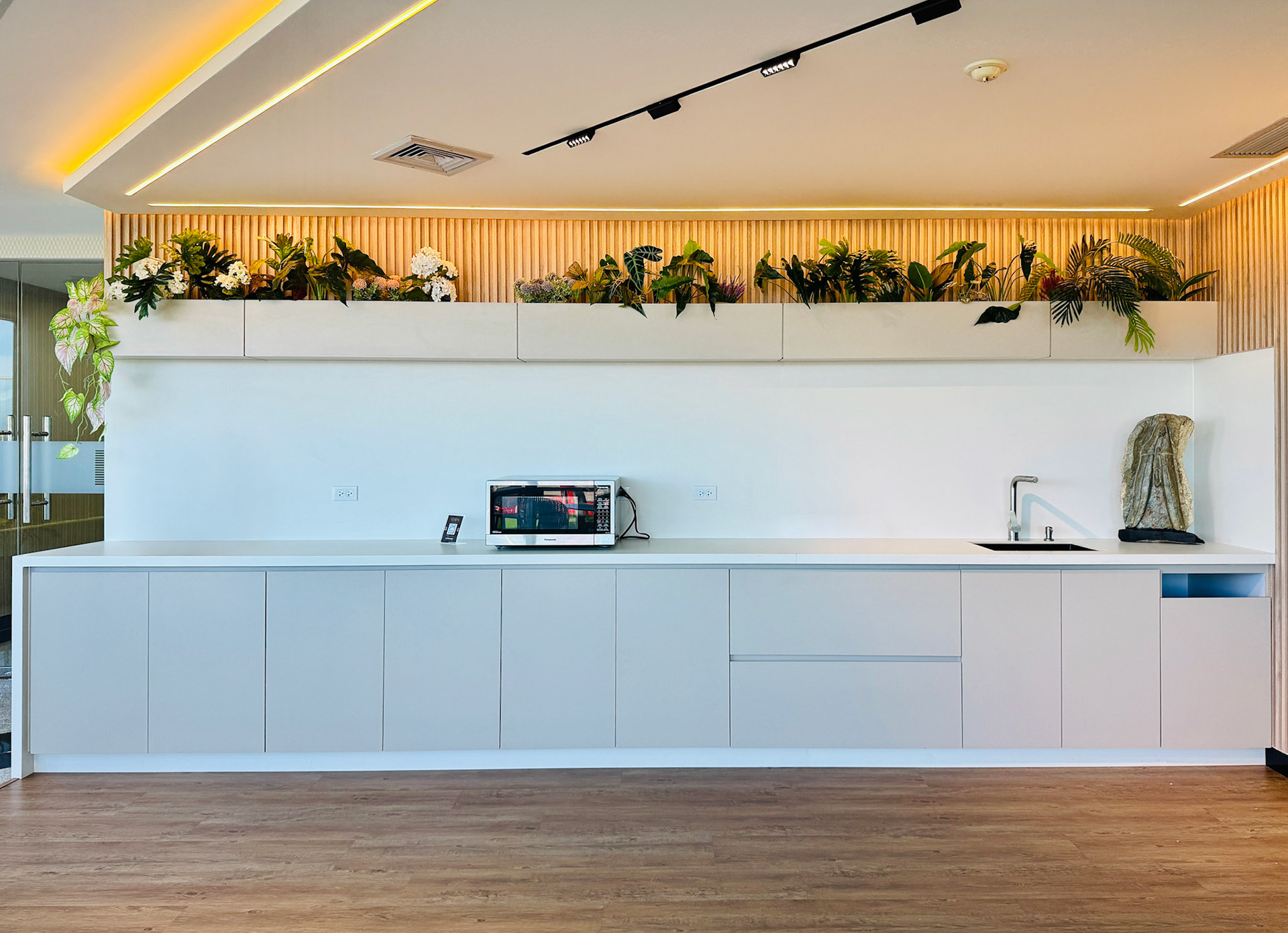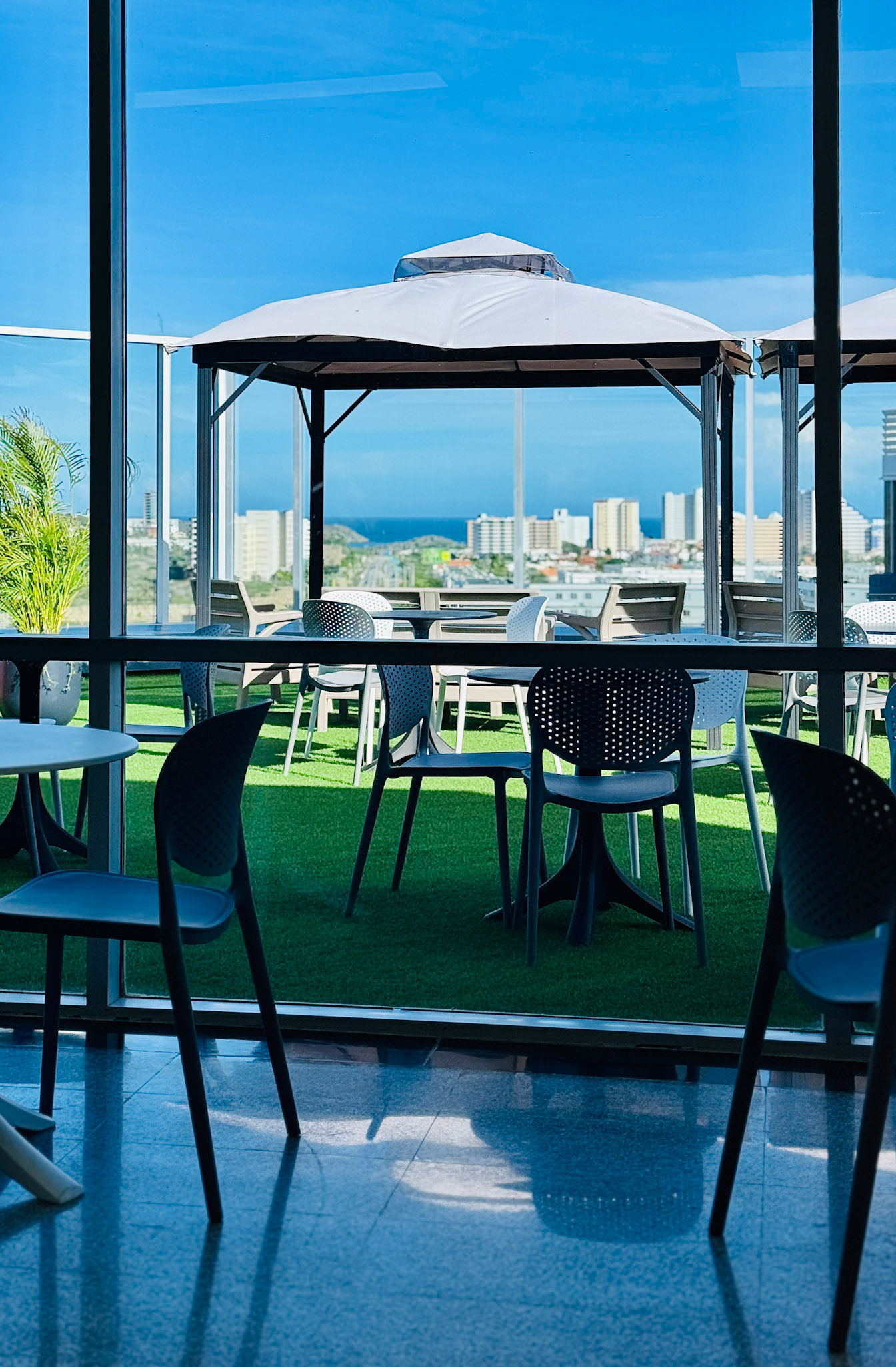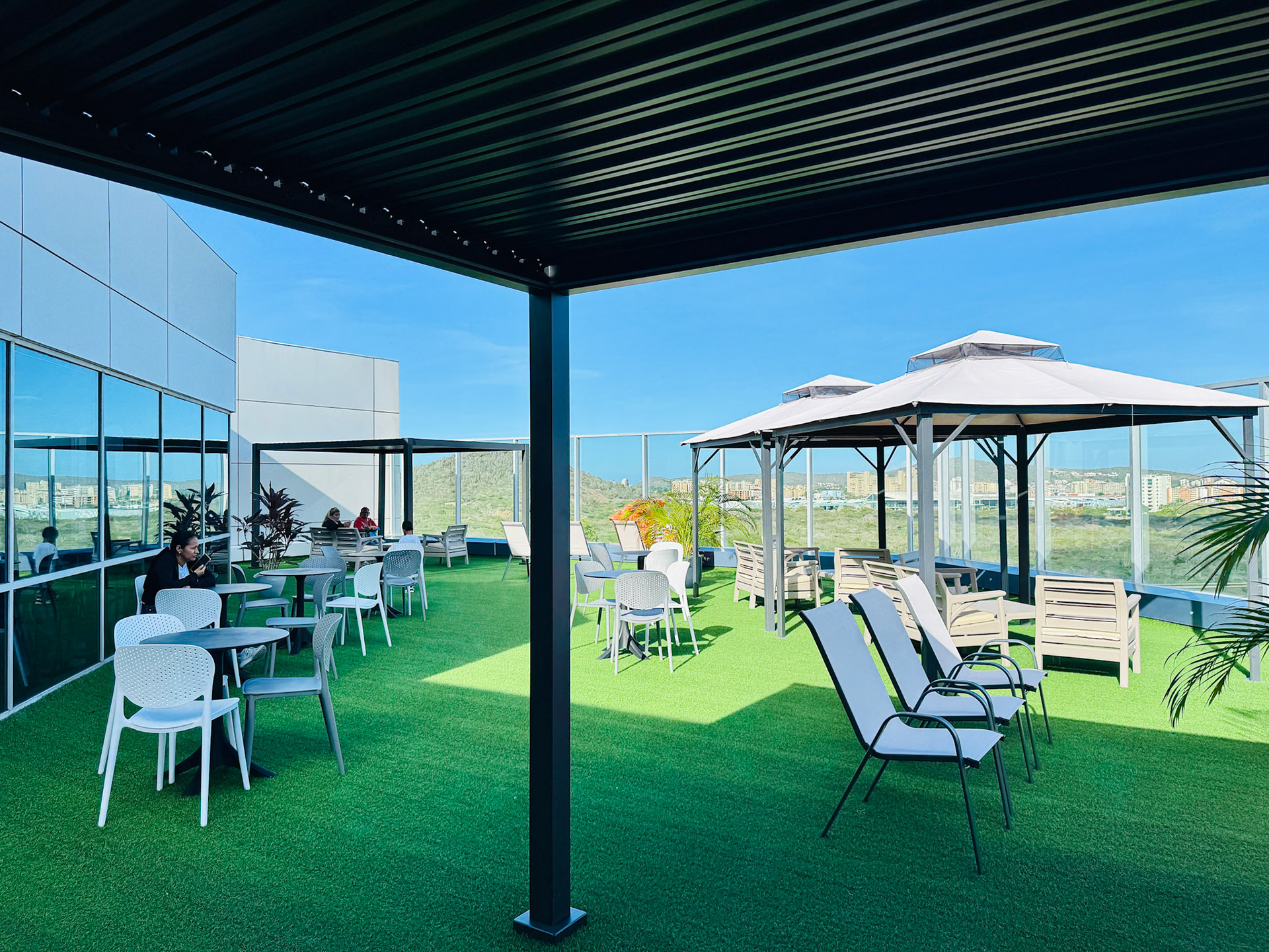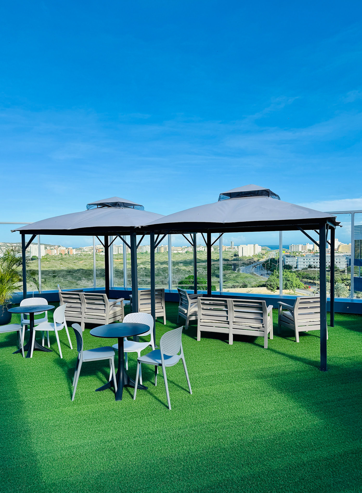 Located on the fourth level of the Hospital Clinicas del Este, Cafe Solarium is an adaptive reuse intervention transforming a residual circulation area into a vital social amenity. The project functions as a strategic distribution hub, articulating the flow between vertical circulation nodes, the inpatient ward, and the exterior "Solarium" terrace. Architecturally, the design prioritizes a human-centric approach to healthcare environments. By introducing a material palette of warm woods and a curated, soft lighting strategy, the intervention counteracts the clinical sterility of the hospital, providing a comforting sanctuary for patients' families.
