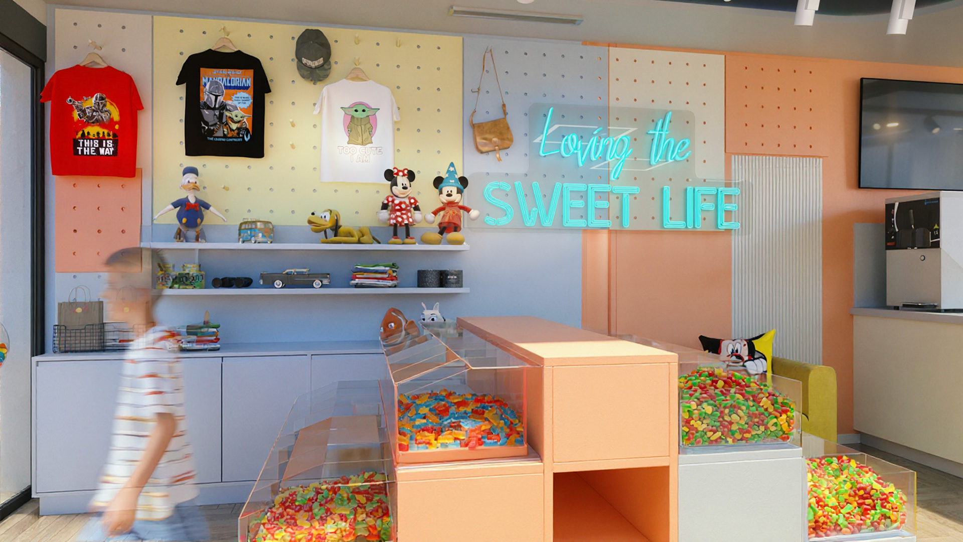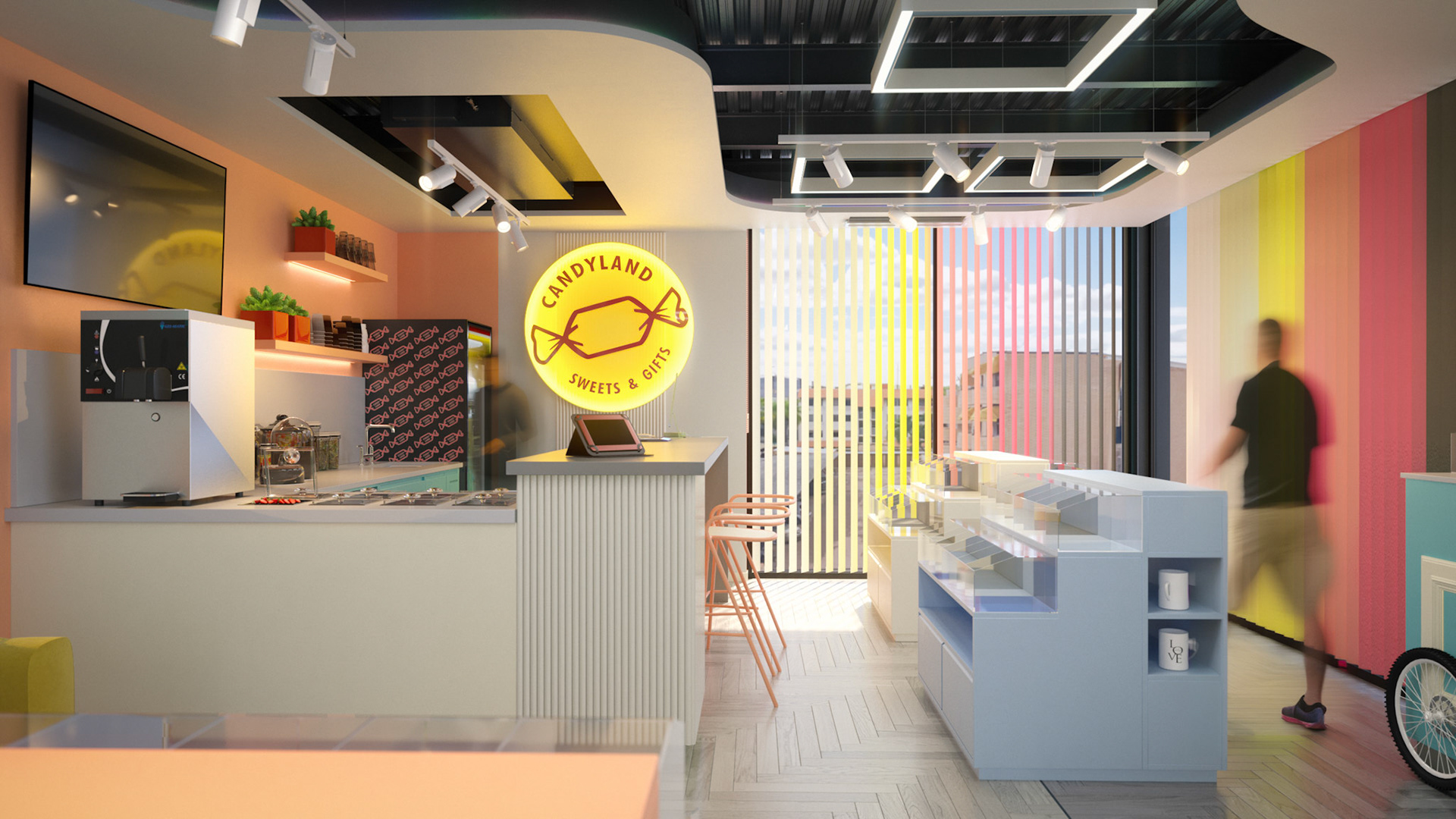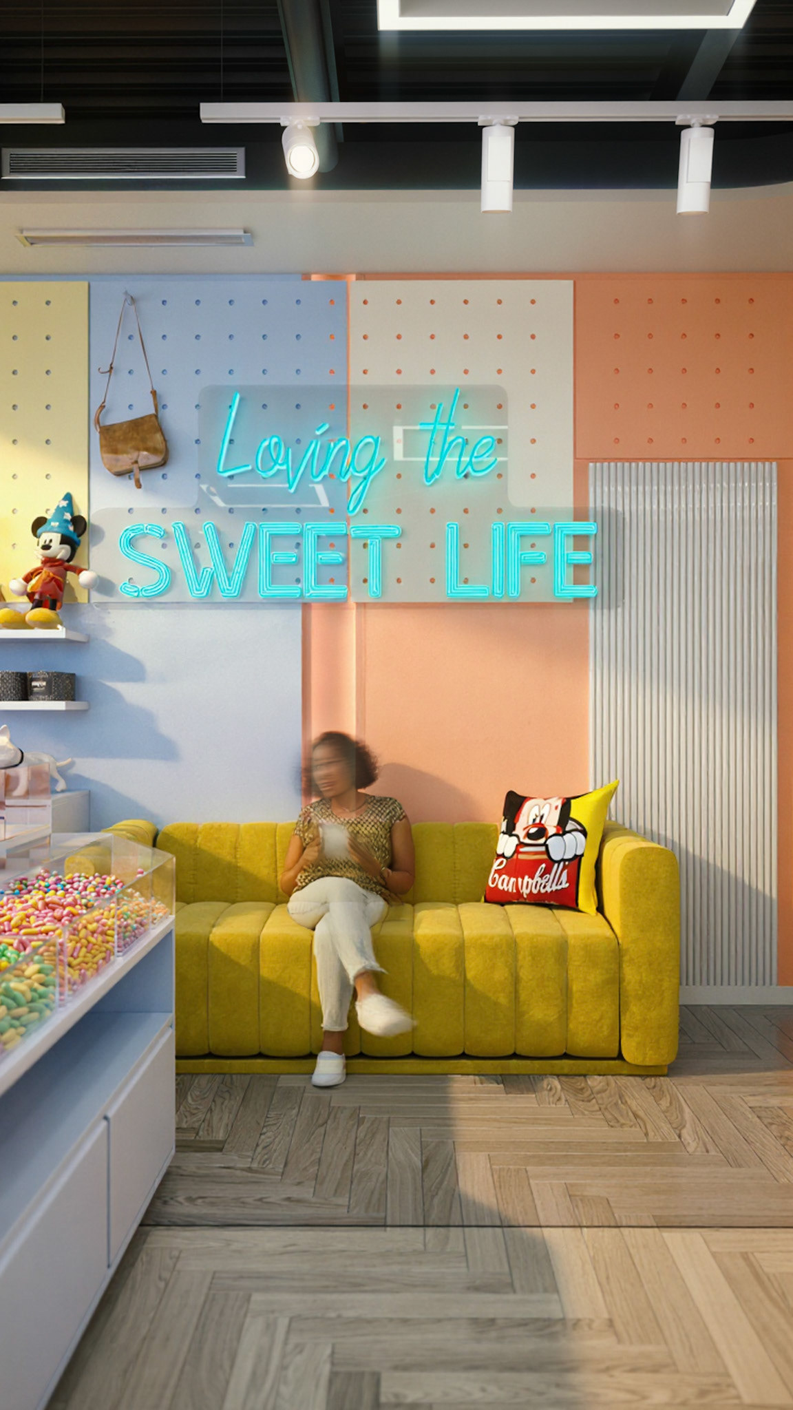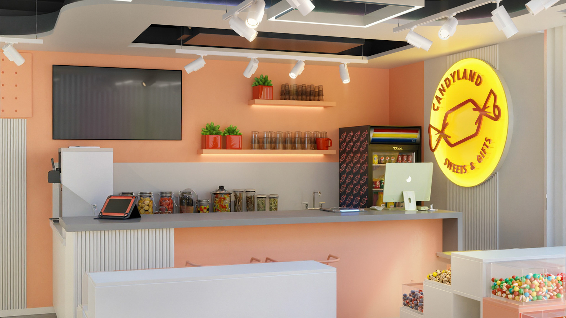 Located in a premier commercial center on Margarita Island, Candyland reinterprets the retail candy shop typology through a minimalist contemporary lens. The design strategy employs a soft pastel chromatic palette to generate a playful, child-centric environment without visual clutter. The functional layout includes custom acrylic display systems for confectionery, integrated merchandising zones for apparel and souvenirs, and a self-service frozen yogurt station. The project successfully balances a clean, simple aesthetic with the vibrancy required for a family-oriented commercial space.