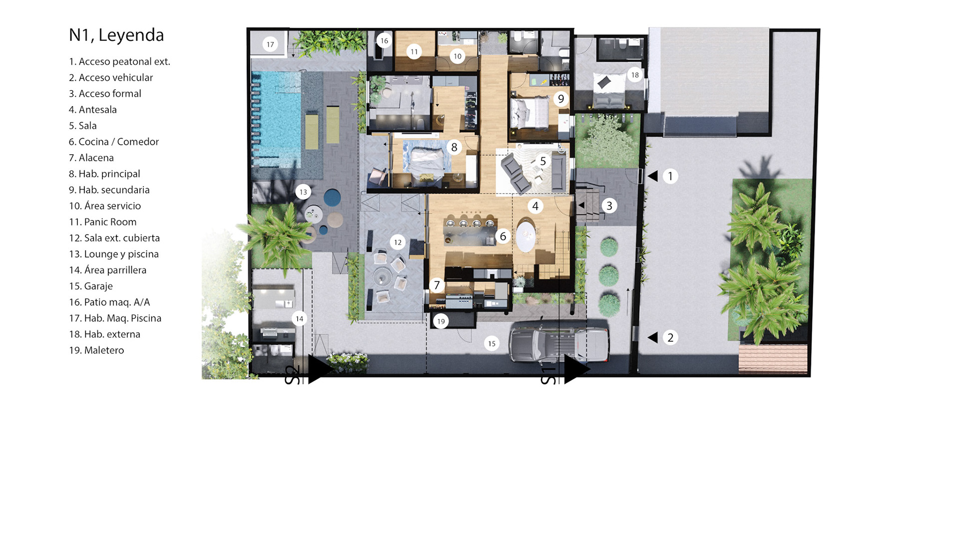 House F No.1 represents the inaugural project in a series of residential renovations situated in the lush landscape near La Asunción, Margarita Island. Commissioned as a permanent retirement residence, the design synthesizes two distinct architectural languages: minimalist contemporary aesthetics and traditional colonial heritage. The result is a sophisticated, low-density luxury home that remains visually unobtrusive. The architectural program is tailored for tropical living, integrating extensive outdoor amenities—including a pool, gardens, and patios—along with a private office located on the second level.