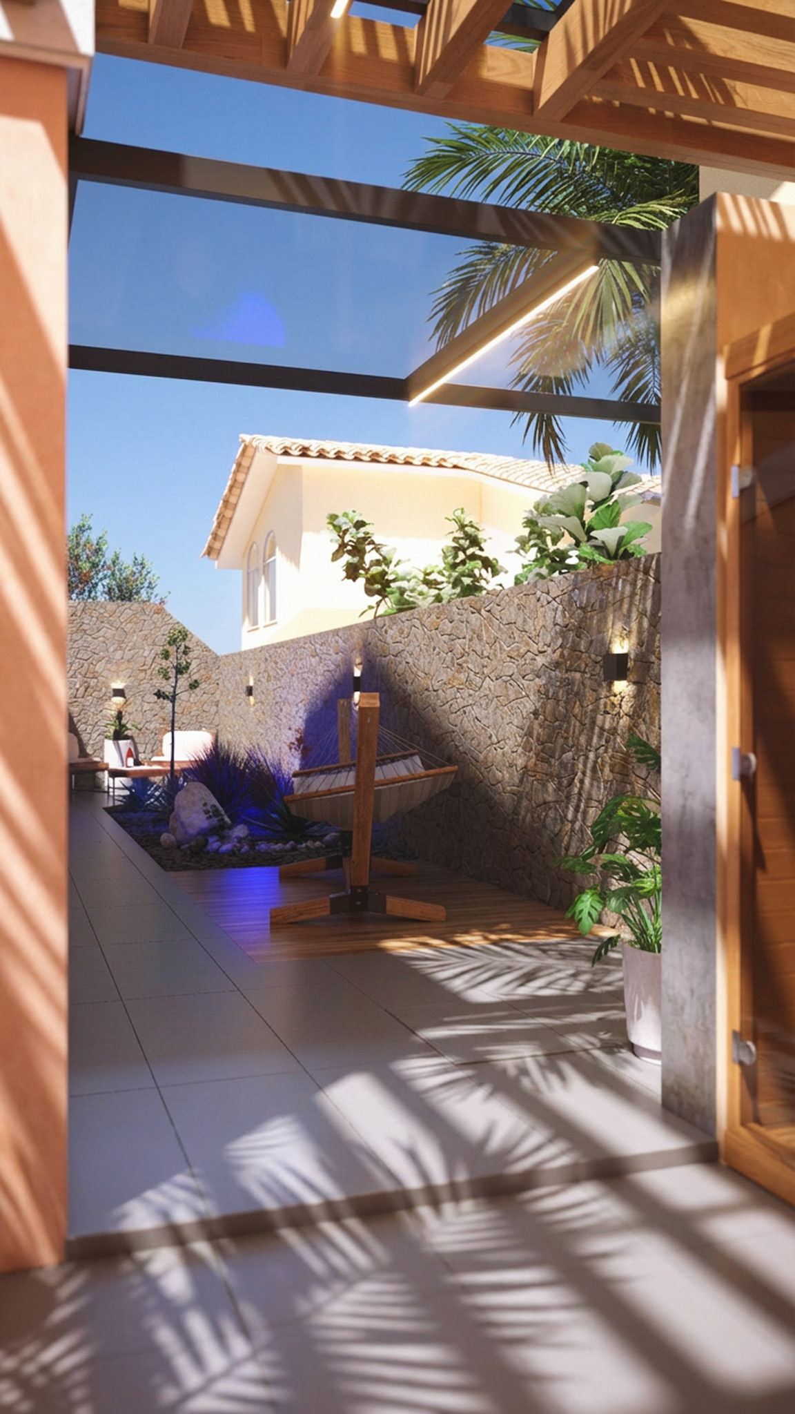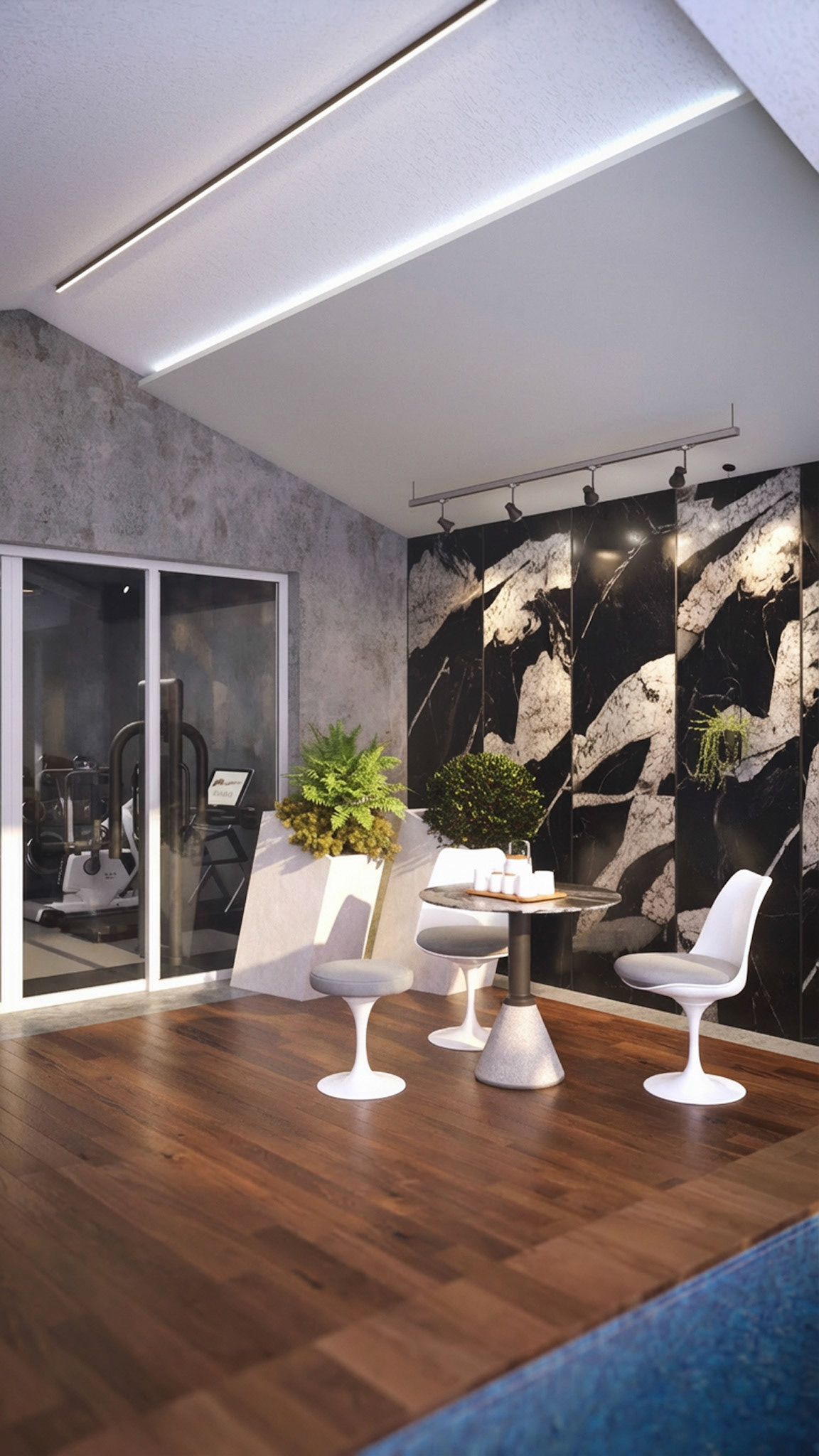 House No.36 serves as the strategic expansion of the adjacent House No.35, resulting in the unification of two individual lots into a comprehensive residential complex. The design intent was to seamlessly integrate the new volume with the existing architectural language, maintaining the sleek, contemporary aesthetic established in the primary residence. This annex accommodates a recreational program that serves both properties, featuring a jacuzzi, sauna, ping-pong arena, and a dry garden tailored for relaxation. Additionally, it houses service support areas such as an employee kitchen, ensuring a clean and efficient operational flow.