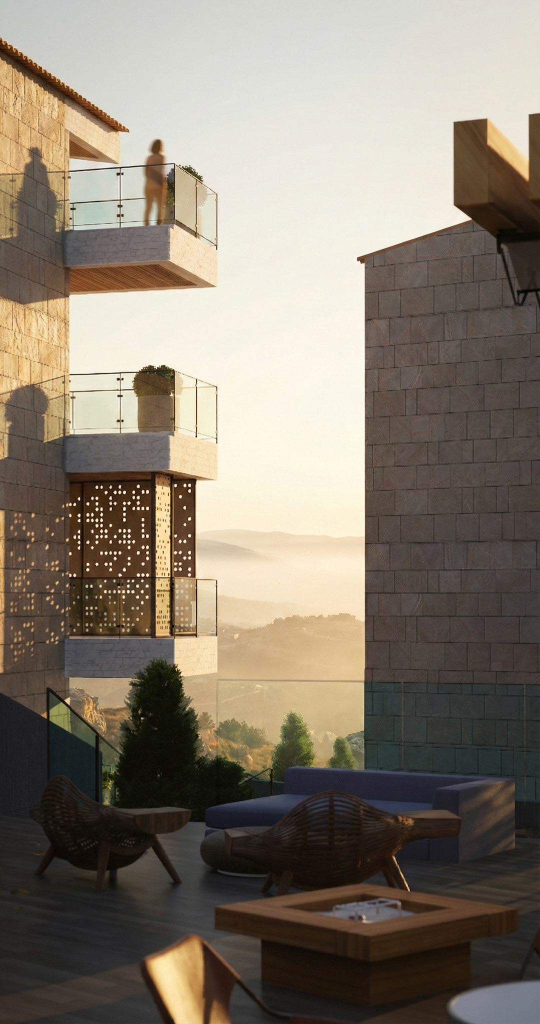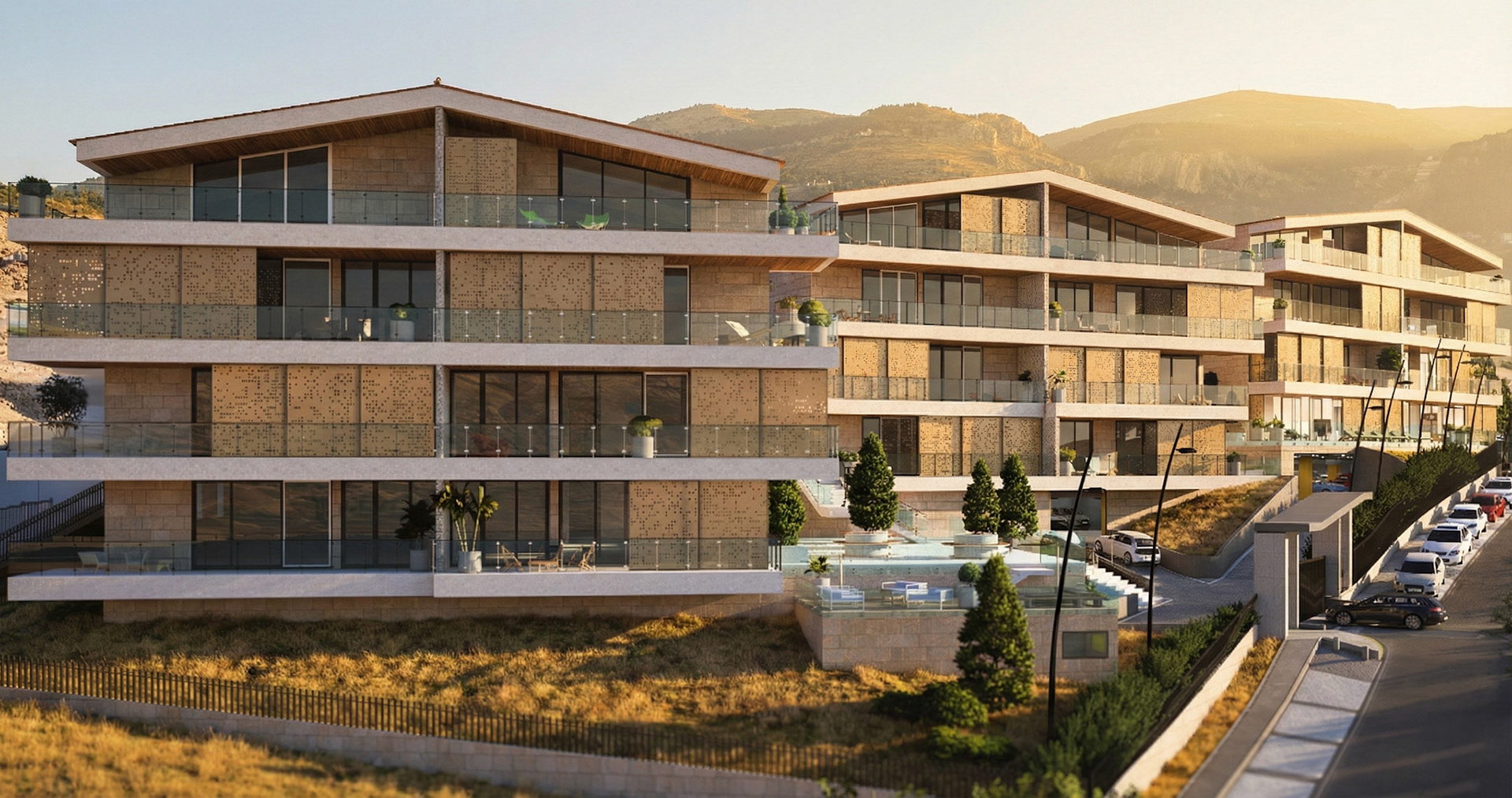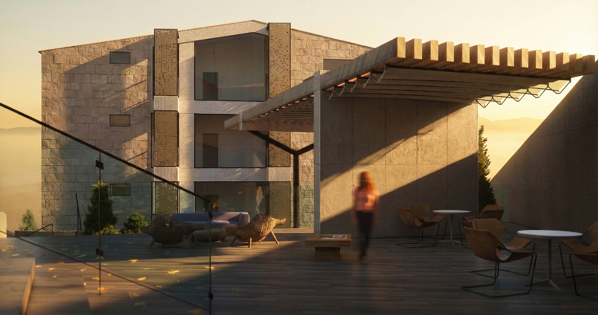 Lakeview: Residential Complex Located in the Bekaa region of Lebanon, this project sits on a sloped terrain overlooking Lake Qaraoun. The design features 23 luxury units that blend contemporary aesthetics with traditional Lebanese materials and elements.