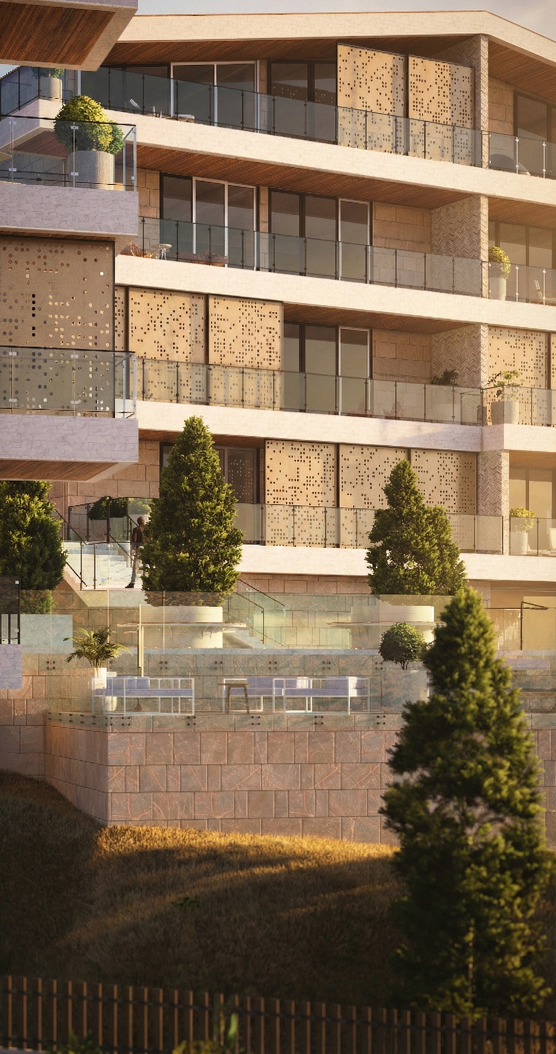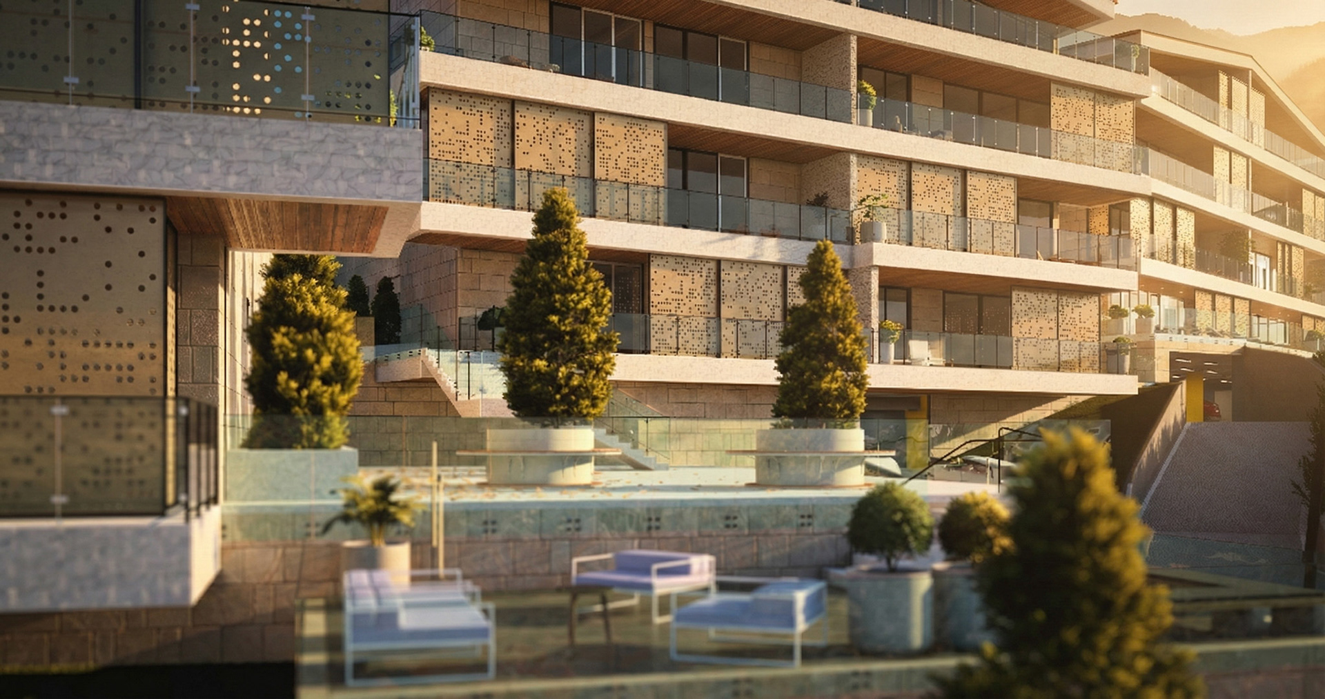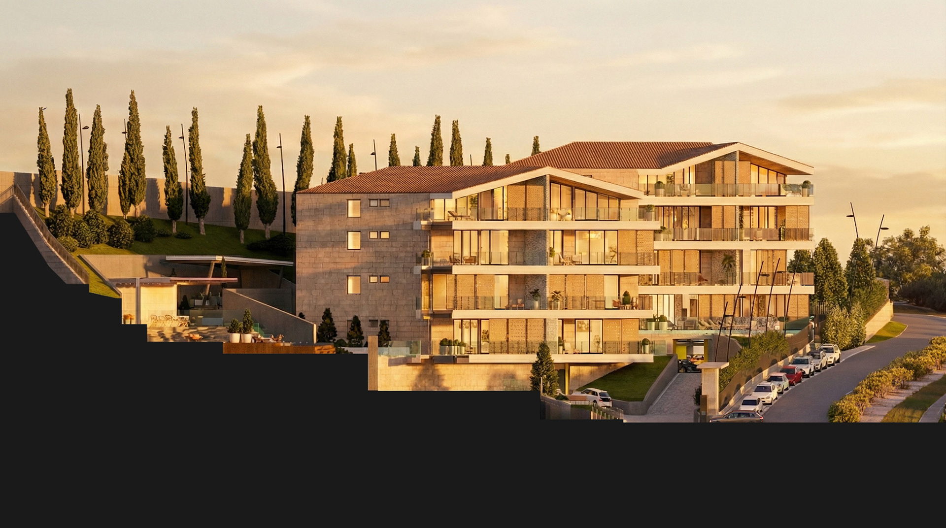 Lakeview: Residential Complex Located in the Bekaa region of Lebanon, this project sits on a sloped terrain overlooking Lake Qaraoun. The design features 23 luxury units that blend contemporary aesthetics with traditional Lebanese materials and elements.