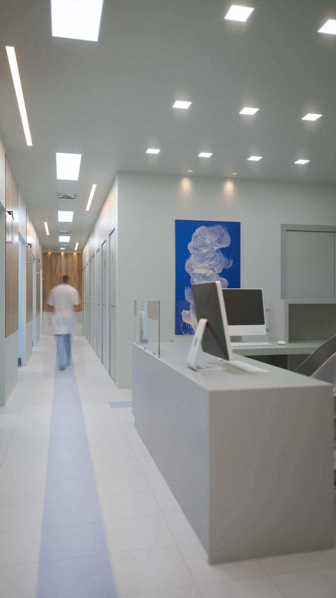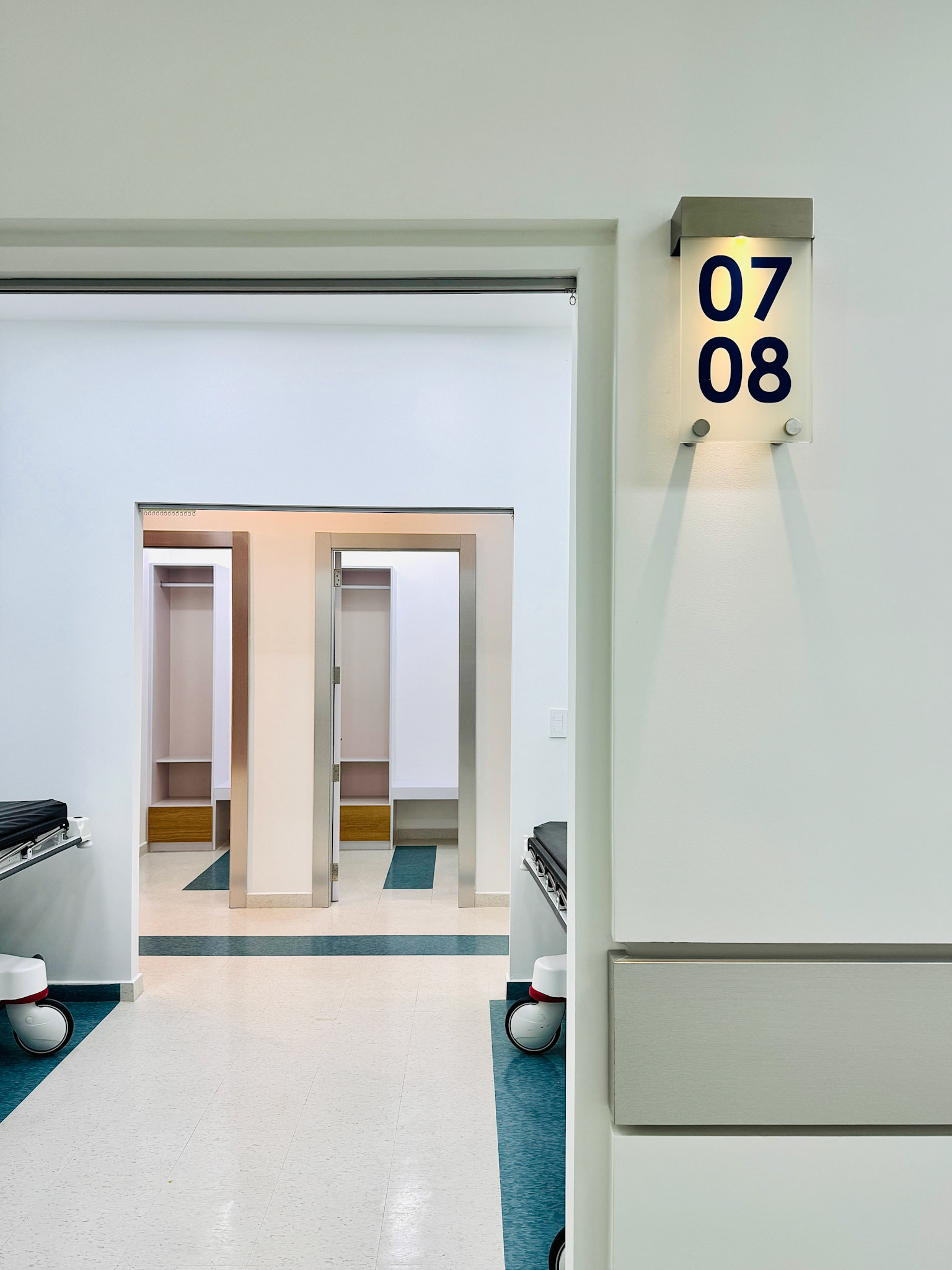 Functioning as the primary pre-operative hub for Hospital Clinicas del Este, UCA manages the critical transition phase for surgical patients. The unit is programmed to accommodate up to eight simultaneous users, facilitating final medical checks, administrative intake, and surgical preparation. The spatial layout integrates essential support nodes, including patient locker areas, minor procedure rooms, and a central nurse control station. Aesthetically, the project maintains continuity with the hospital's human-centric design strategy, employing a palette of warm tones and wood finishes to mitigate pre-surgical anxiety through environmental psychology.