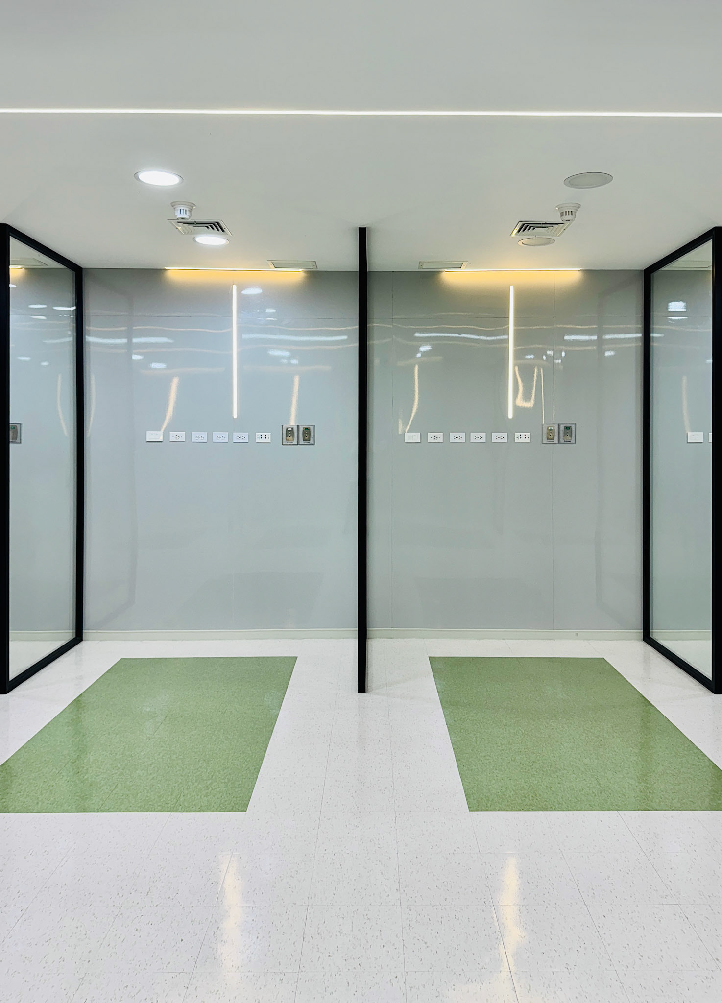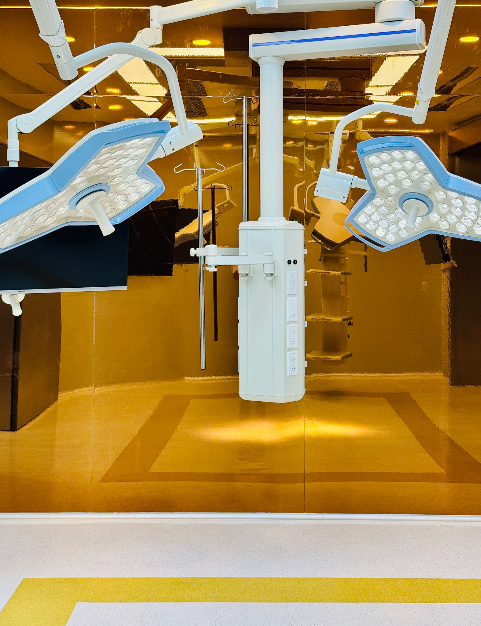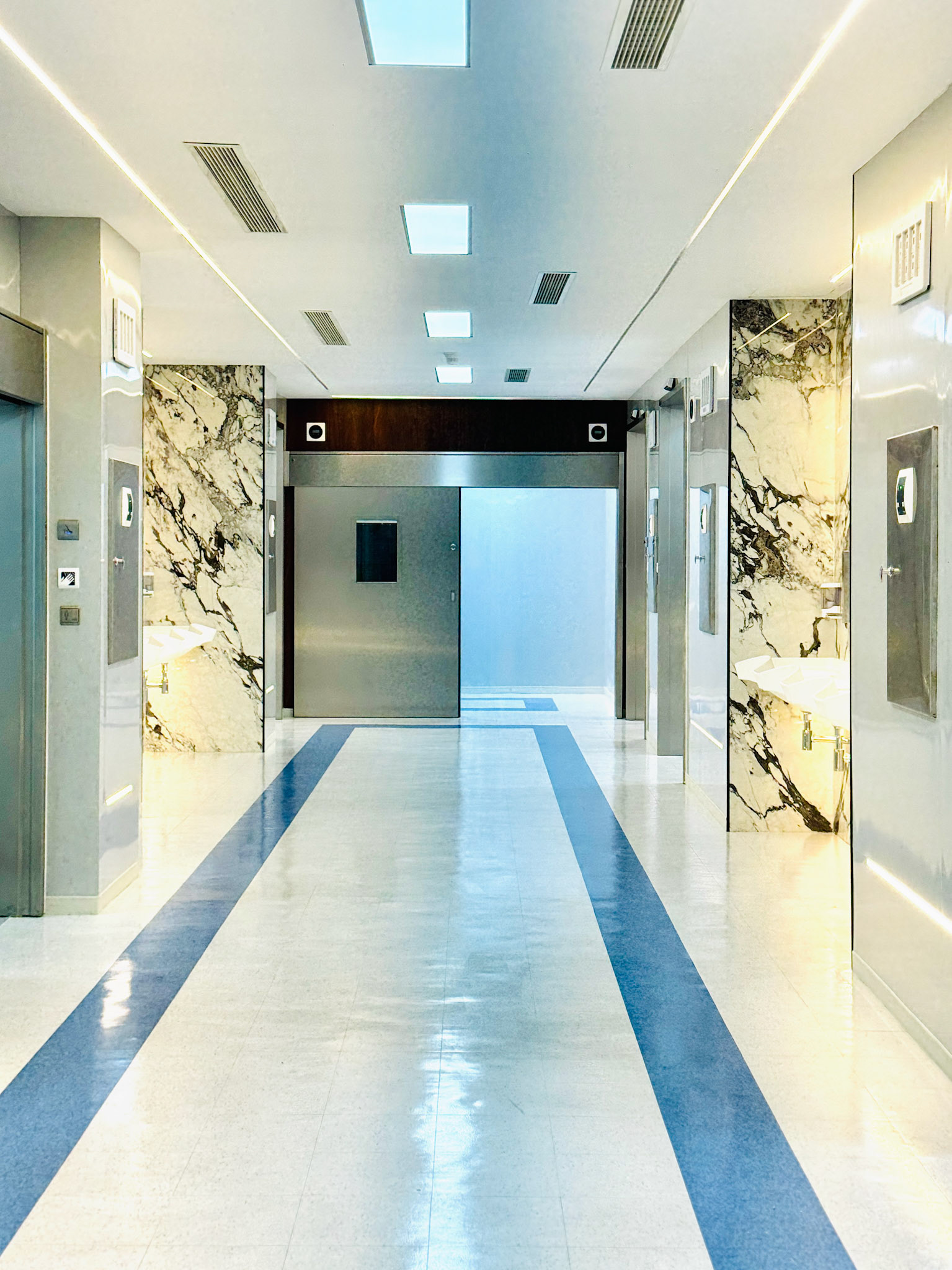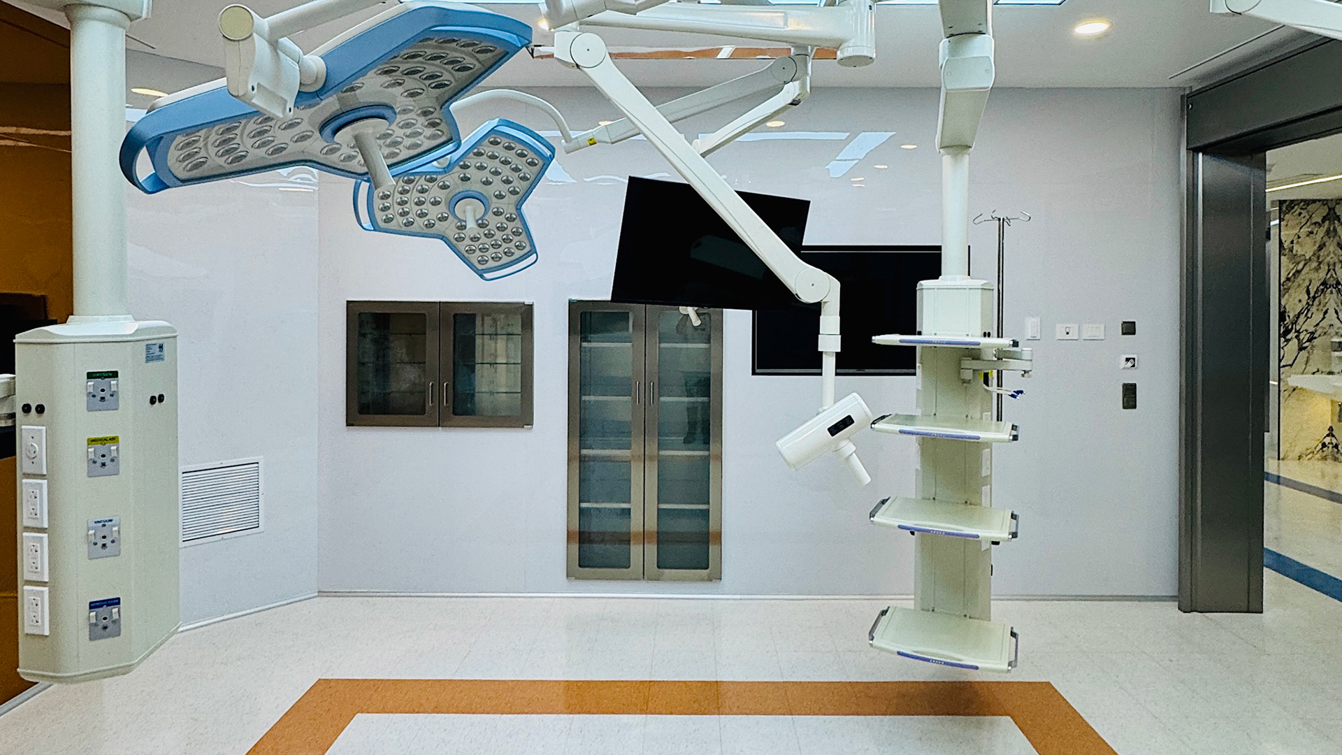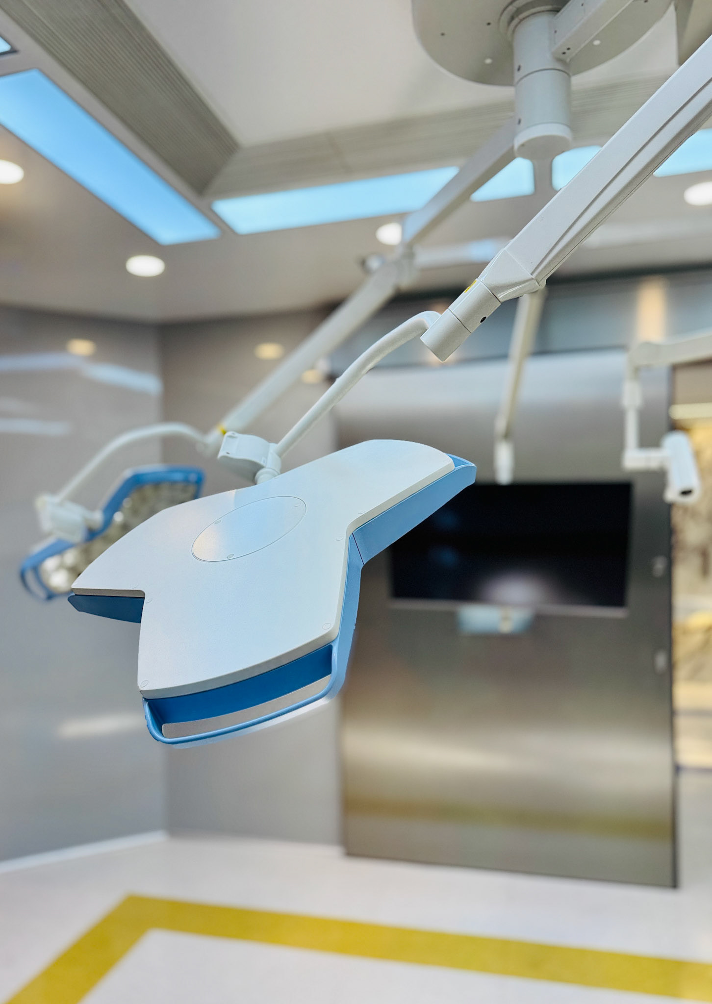 As the flagship department of the hospital, UQ represents the facility's Surgical Ward, engineered to accommodate high-complexity interventions. The architectural program comprises seven high-specification operating theaters, each offering over 25m² of surface area, supported by a dedicated recovery wing with eight beds and two postpartum stations. The design strategy departs from standard clinical aesthetics, employing a clean, minimalist base elevated by a sophisticated material palette. The interior features high-contrast wood and exotic stone detailing, while the operating theaters are distinguished by bold copper accents and a dynamic lighting scheme, solidifying UQ as the "main event" of the complex.