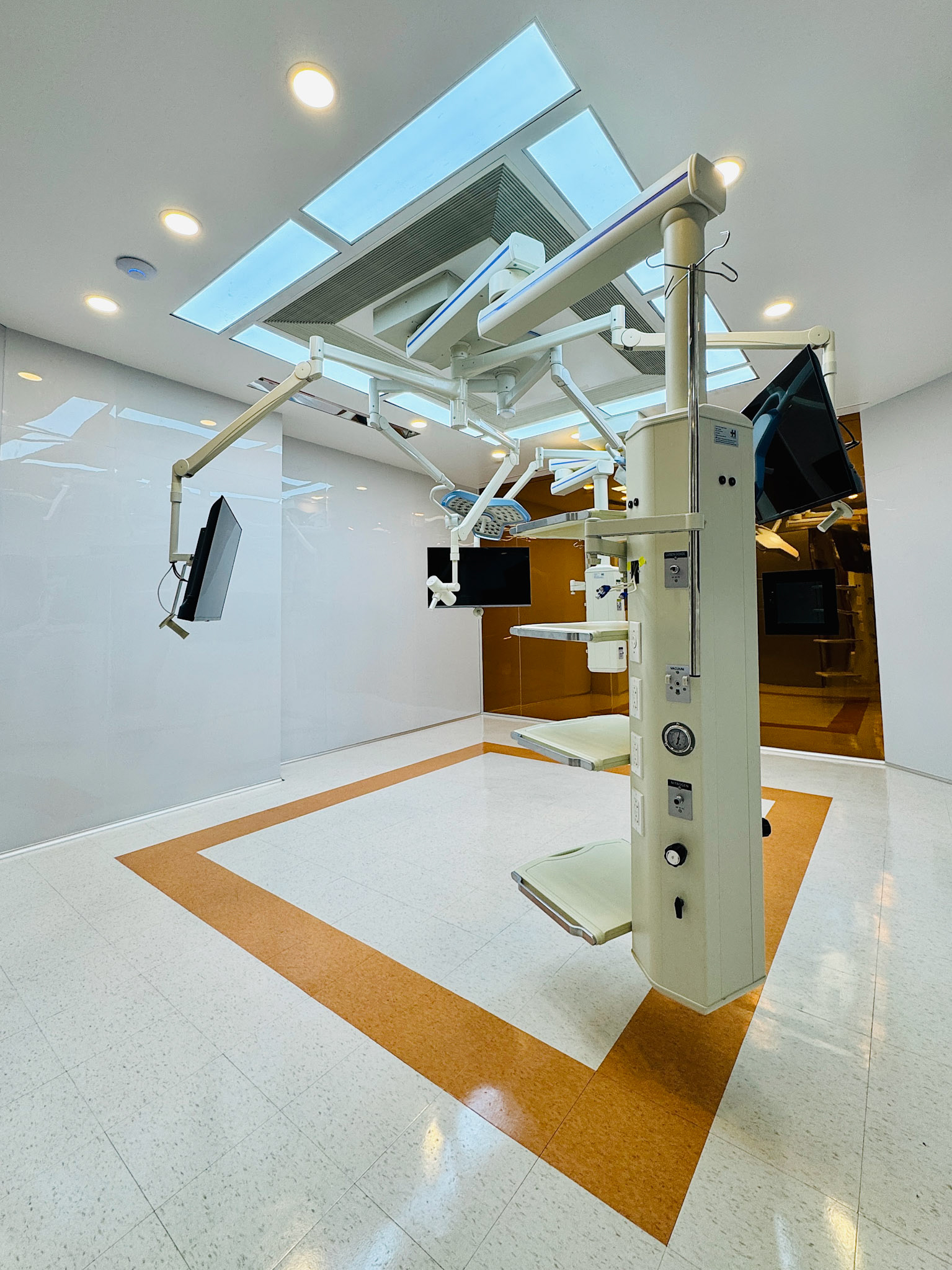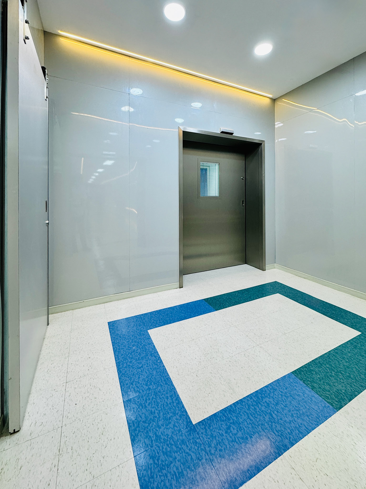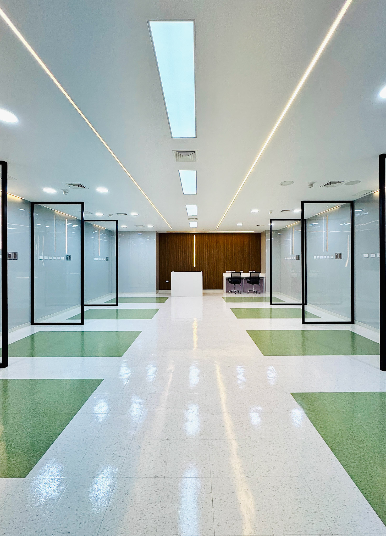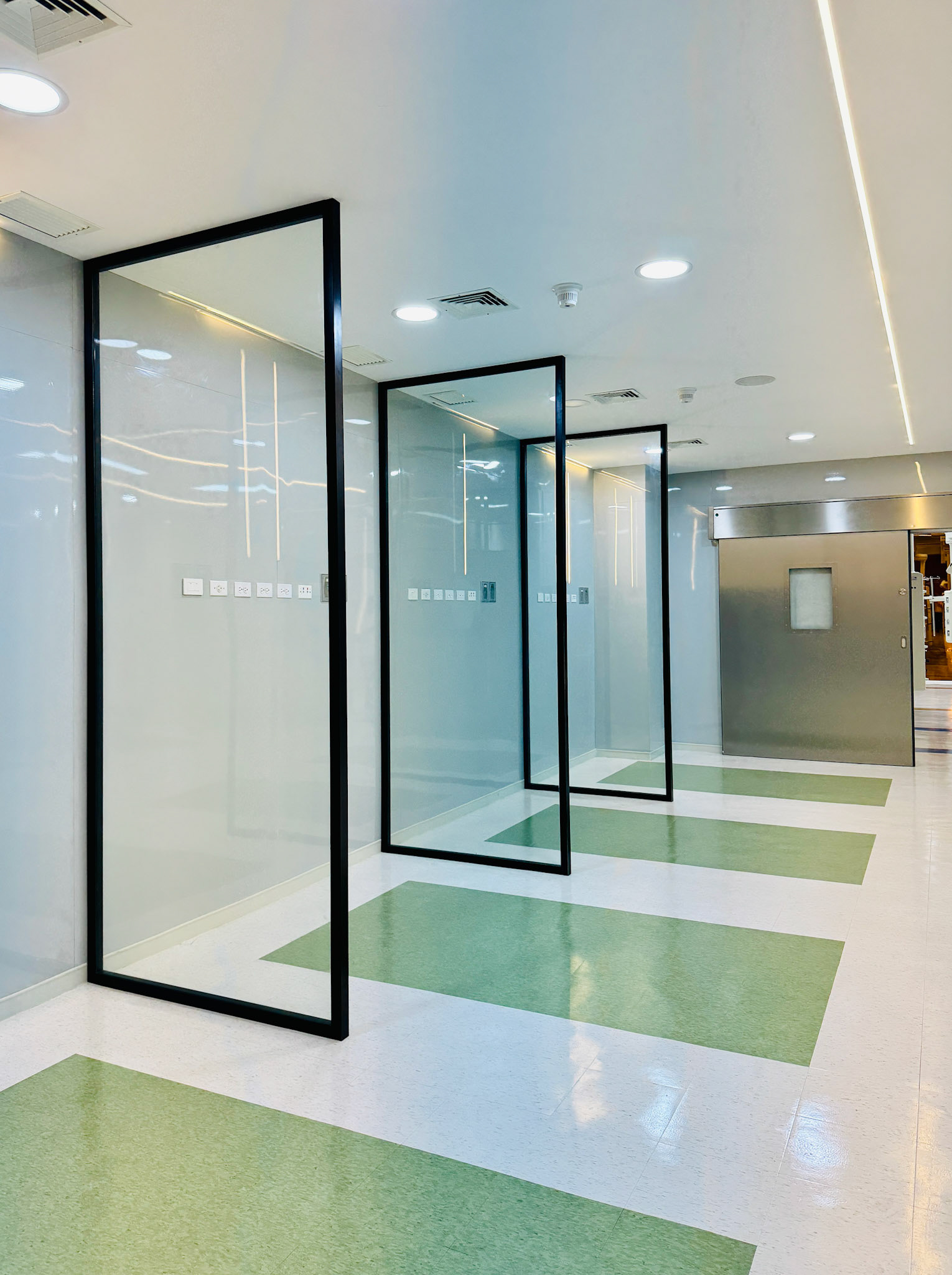 As the flagship department of the hospital, UQ represents the facility's Surgical Ward, engineered to accommodate high-complexity interventions. The architectural program comprises seven high-specification operating theaters, each offering over 25m² of surface area, supported by a dedicated recovery wing with eight beds and two postpartum stations. The design strategy departs from standard clinical aesthetics, employing a clean, minimalist base elevated by a sophisticated material palette. The interior features high-contrast wood and exotic stone detailing, while the operating theaters are distinguished by bold copper accents and a dynamic lighting scheme, solidifying UQ as the "main event" of the complex.