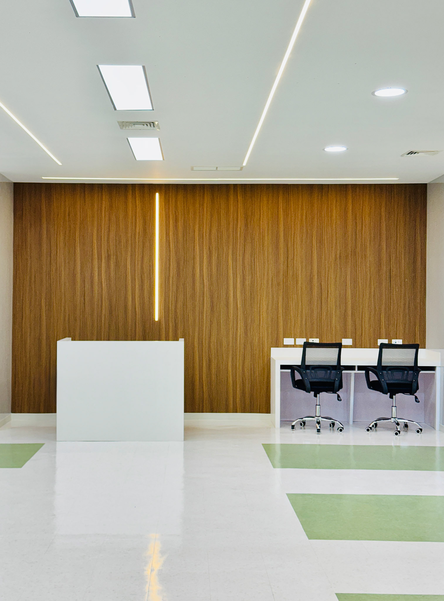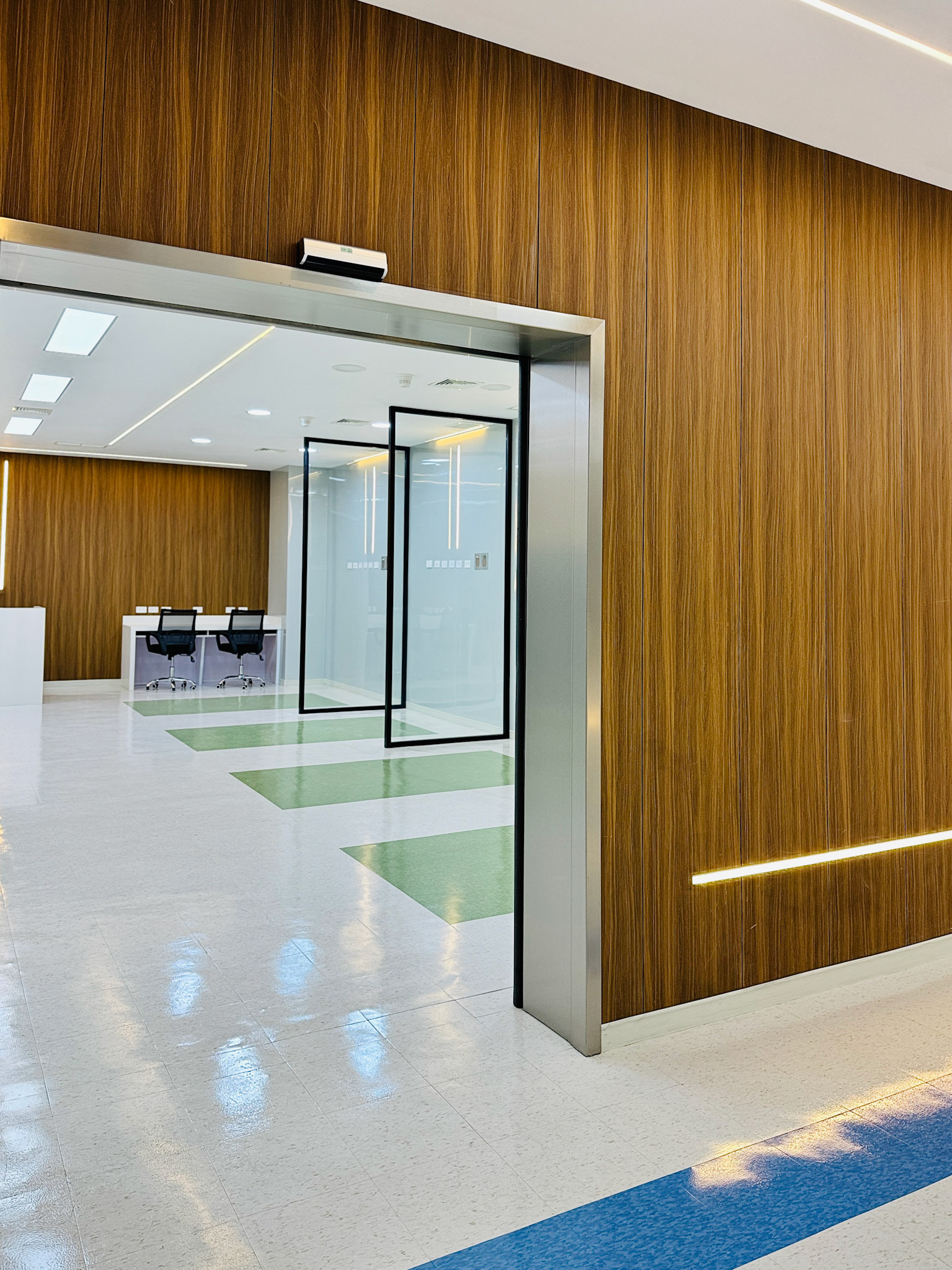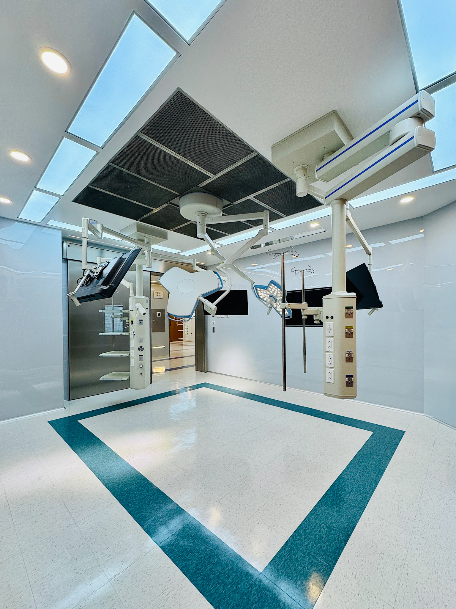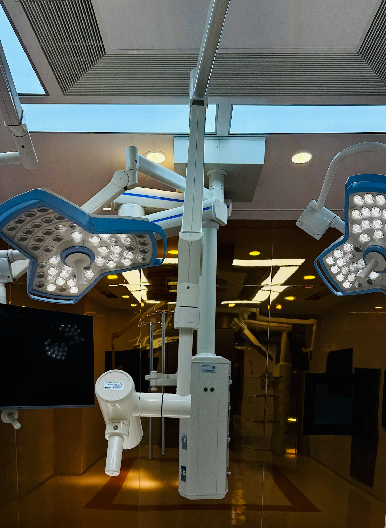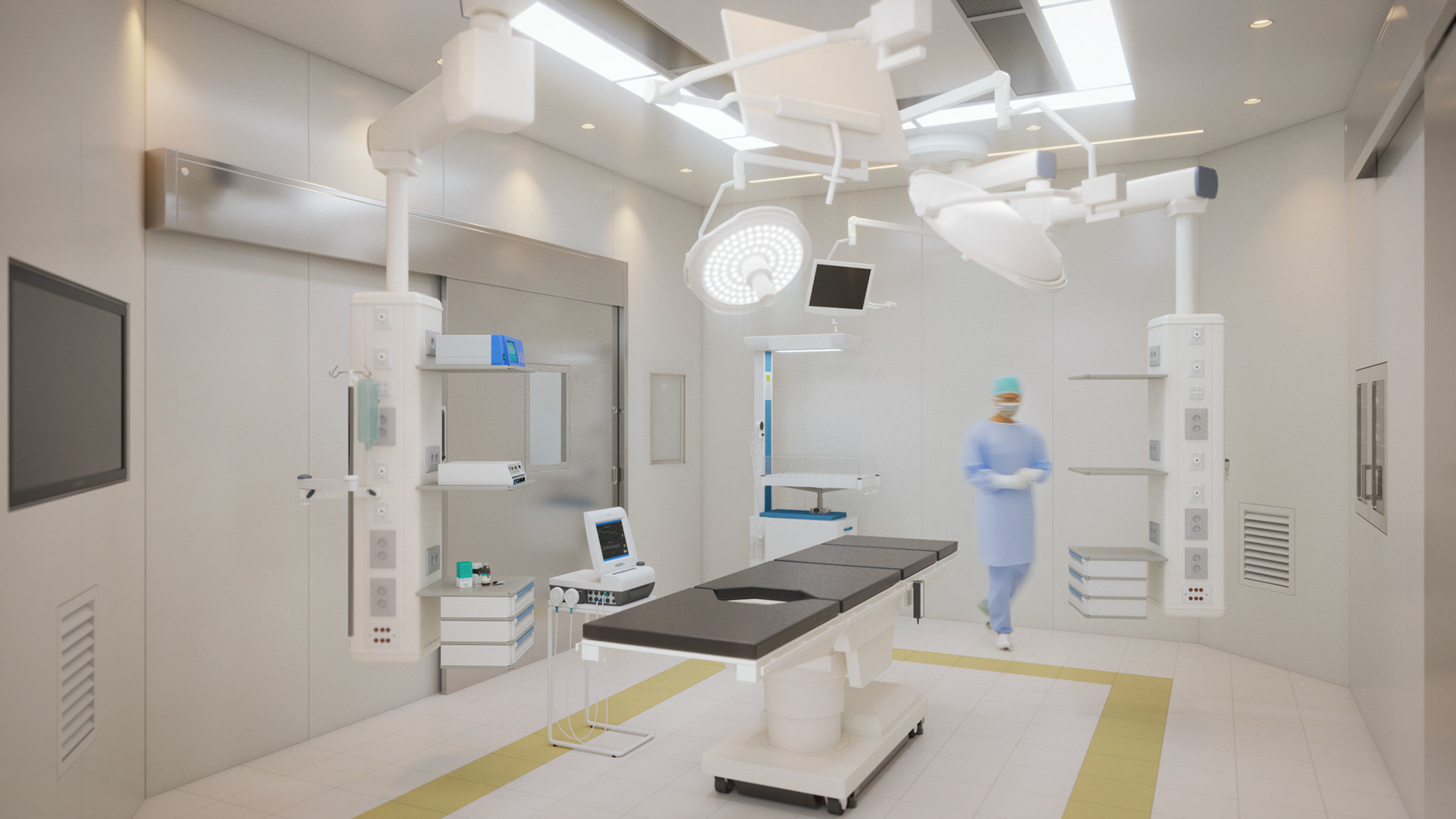 As the flagship department of the hospital, UQ represents the facility's Surgical Ward, engineered to accommodate high-complexity interventions. The architectural program comprises seven high-specification operating theaters, each offering over 25m² of surface area, supported by a dedicated recovery wing with eight beds and two postpartum stations. The design strategy departs from standard clinical aesthetics, employing a clean, minimalist base elevated by a sophisticated material palette. The interior features high-contrast wood and exotic stone detailing, while the operating theaters are distinguished by bold copper accents and a dynamic lighting scheme, solidifying UQ as the "main event" of the complex.