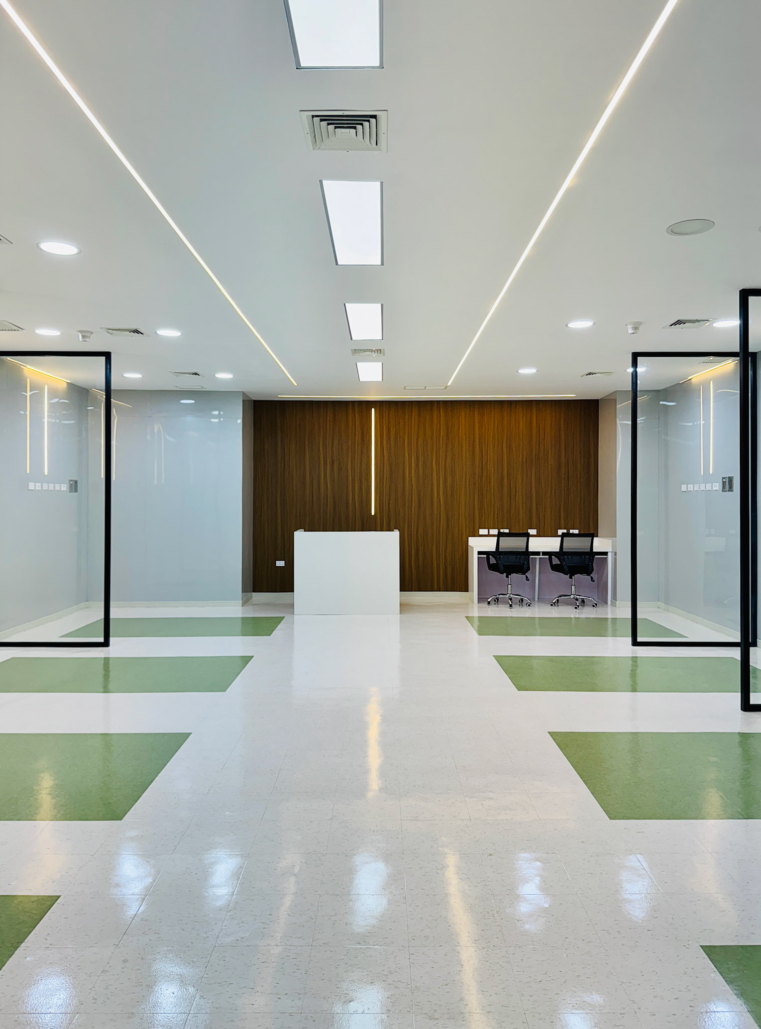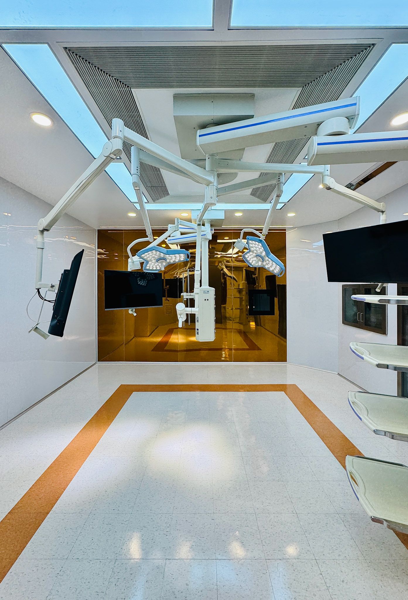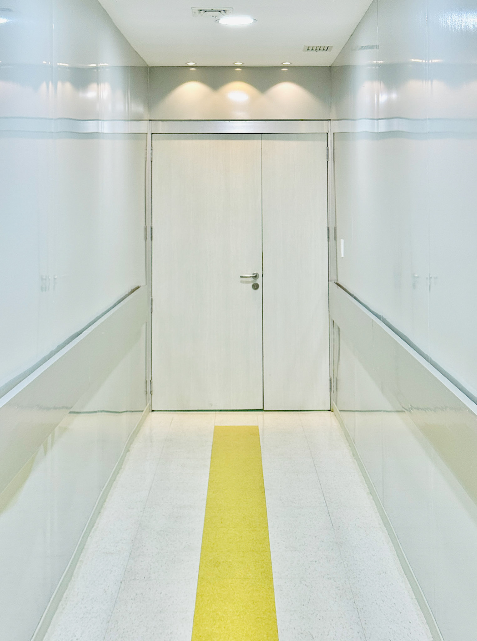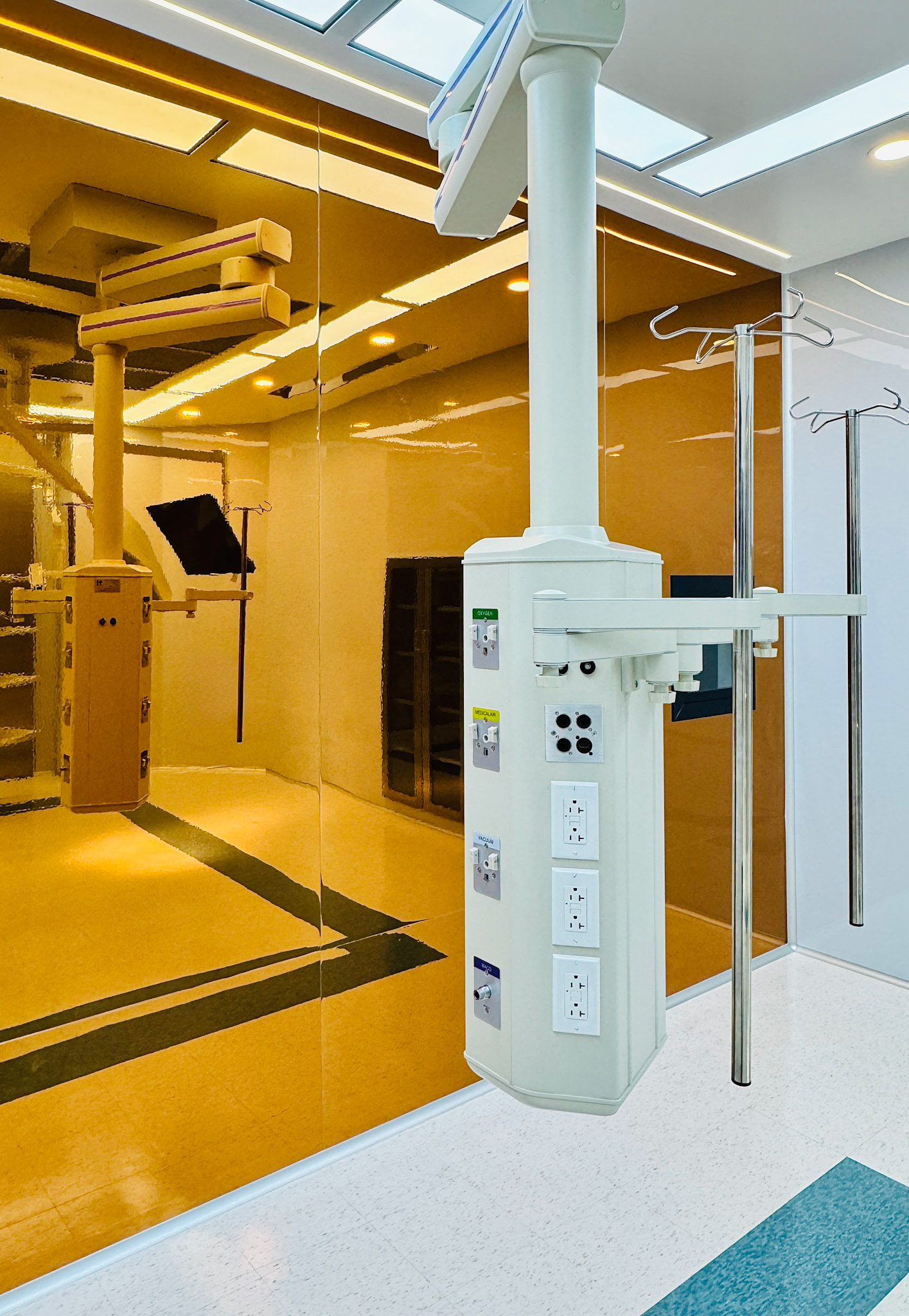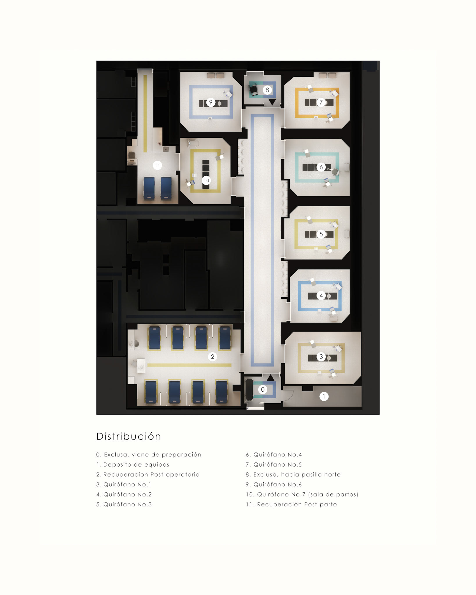 As the flagship department of the hospital, UQ represents the facility's Surgical Ward, engineered to accommodate high-complexity interventions. The architectural program comprises seven high-specification operating theaters, each offering over 25m² of surface area, supported by a dedicated recovery wing with eight beds and two postpartum stations. The design strategy departs from standard clinical aesthetics, employing a clean, minimalist base elevated by a sophisticated material palette. The interior features high-contrast wood and exotic stone detailing, while the operating theaters are distinguished by bold copper accents and a dynamic lighting scheme, solidifying UQ as the "main event" of the complex.