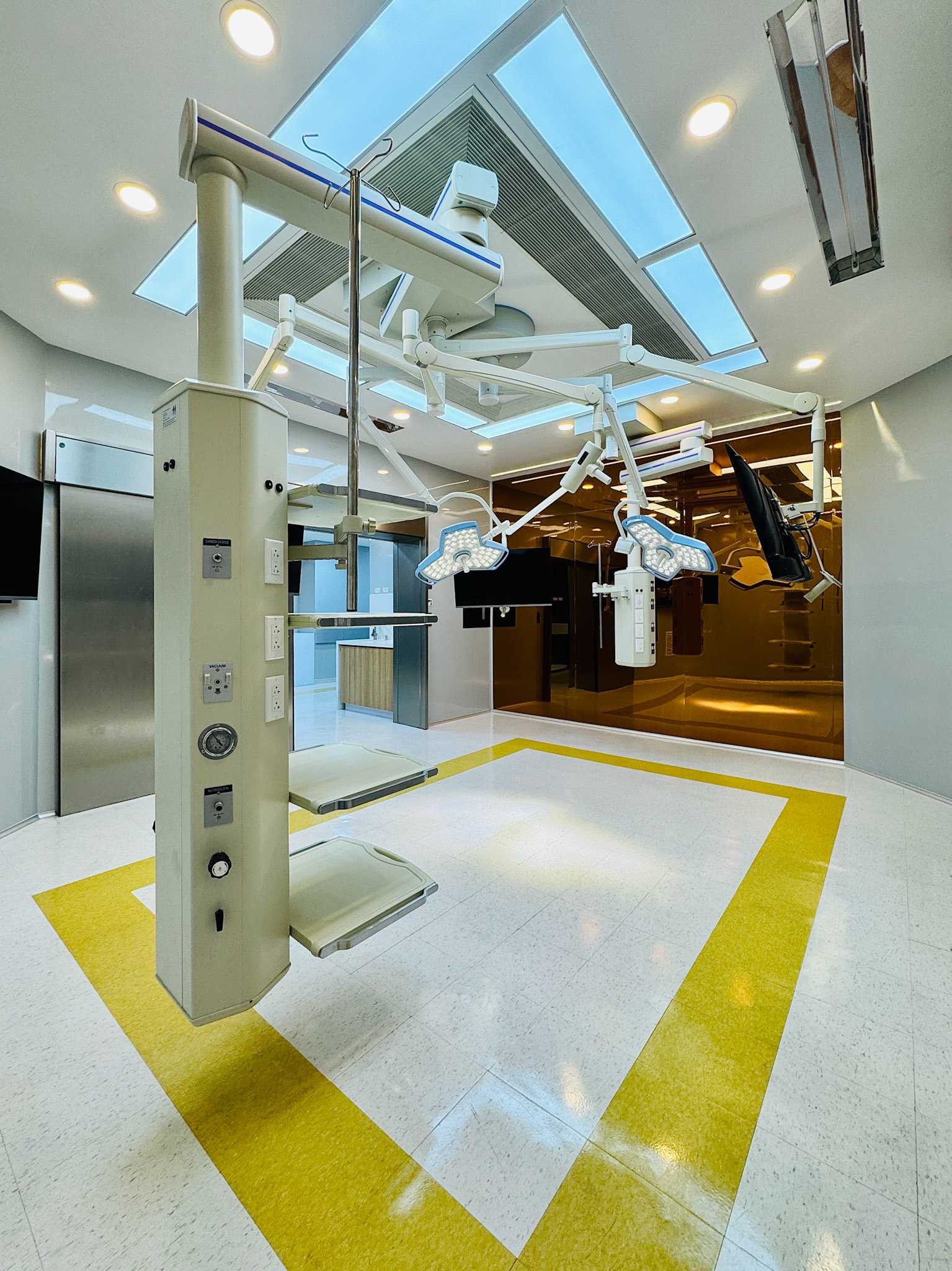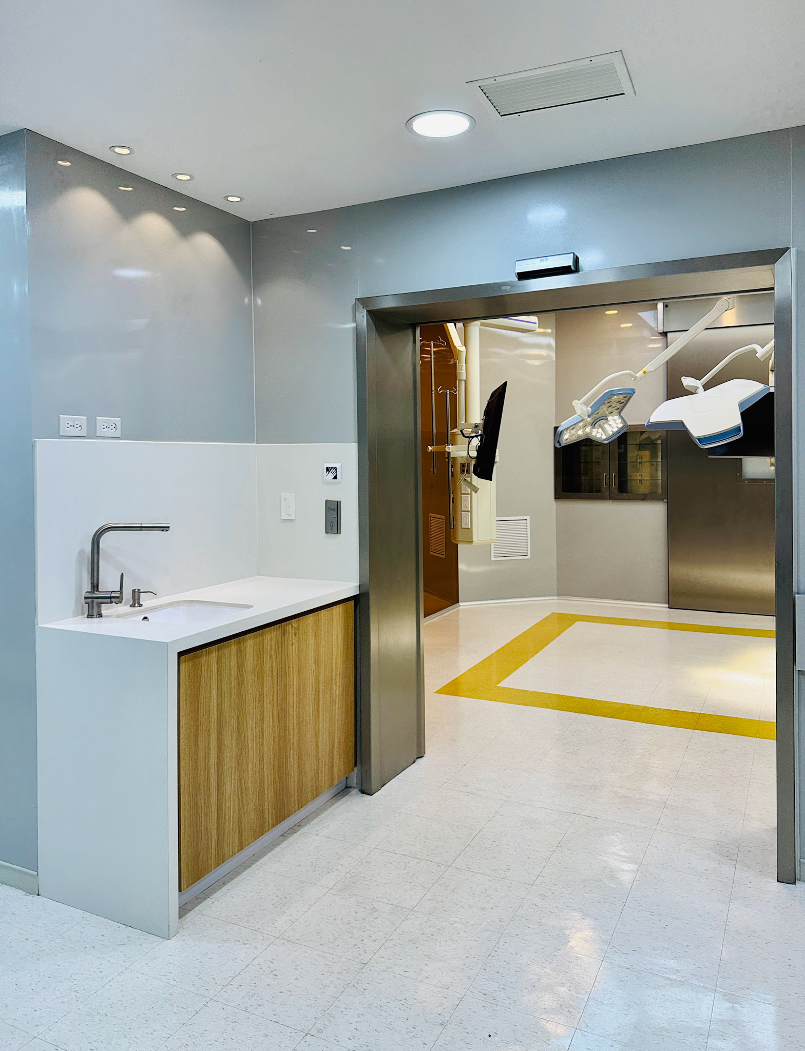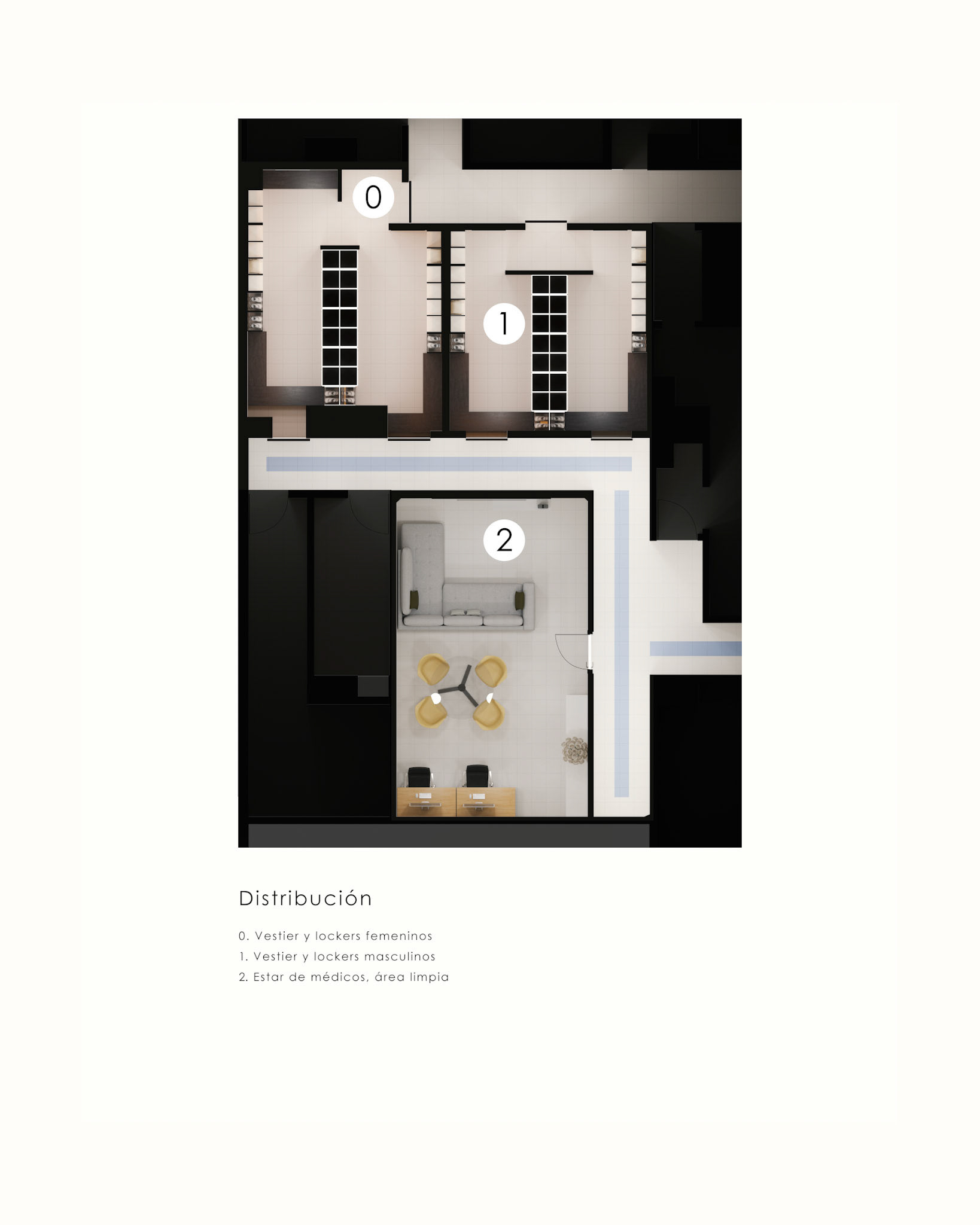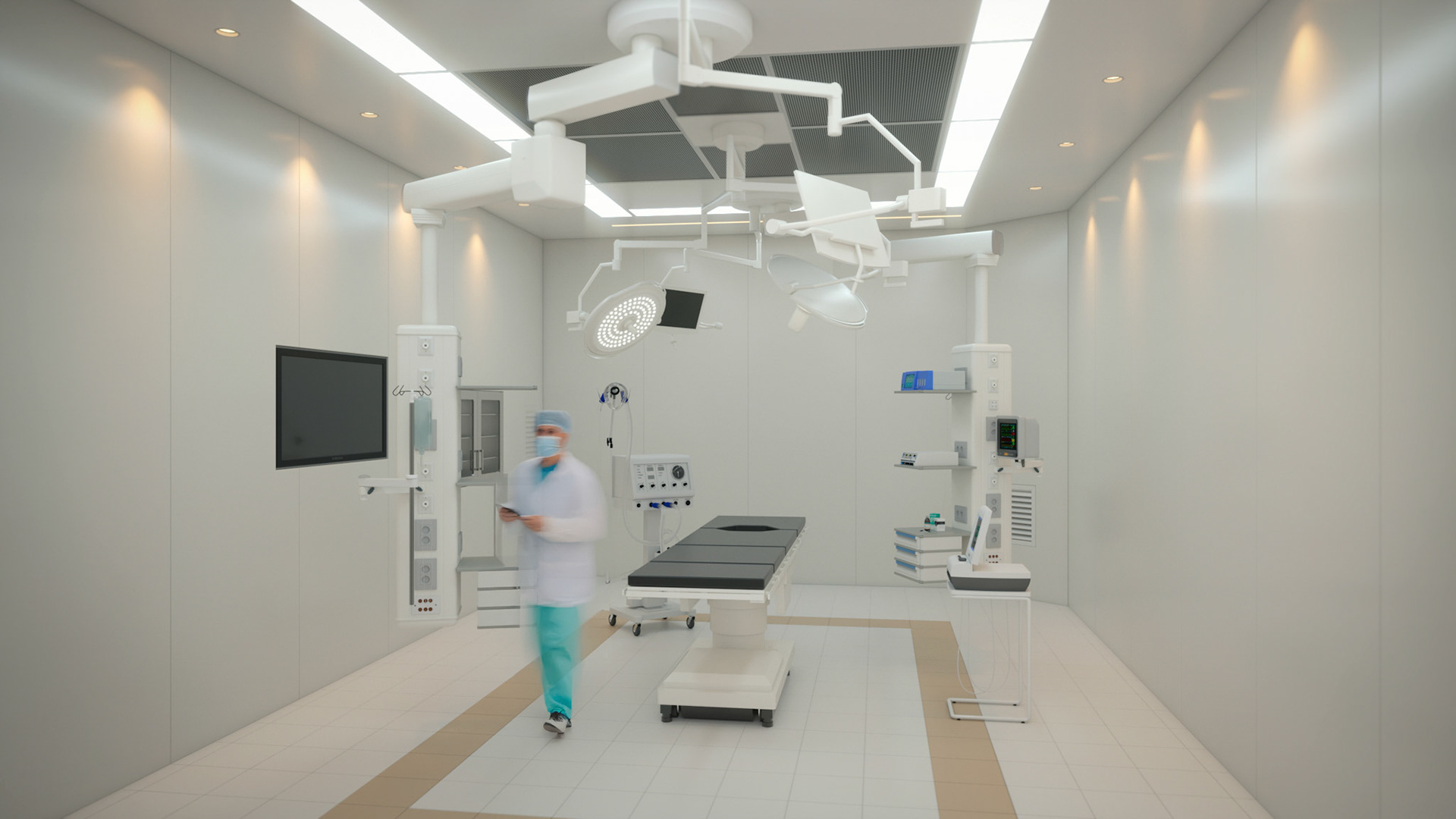 As the flagship department of the hospital, UQ represents the facility's Surgical Ward, engineered to accommodate high-complexity interventions. The architectural program comprises seven high-specification operating theaters, each offering over 25m² of surface area, supported by a dedicated recovery wing with eight beds and two postpartum stations. The design strategy departs from standard clinical aesthetics, employing a clean, minimalist base elevated by a sophisticated material palette. The interior features high-contrast wood and exotic stone detailing, while the operating theaters are distinguished by bold copper accents and a dynamic lighting scheme, solidifying UQ as the "main event" of the complex.