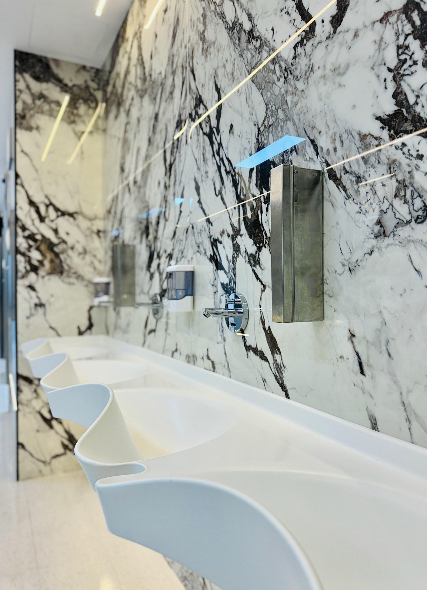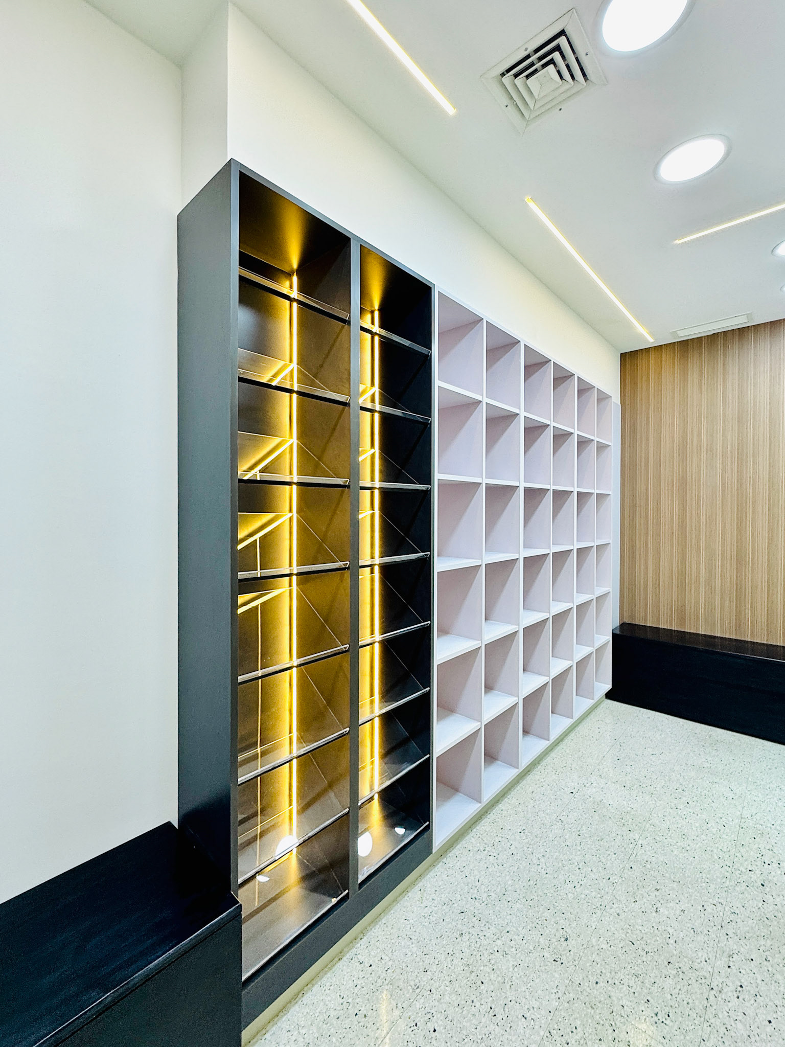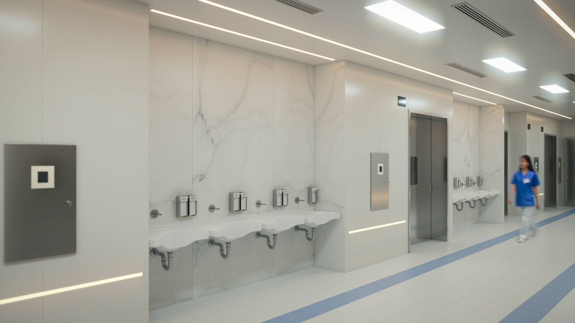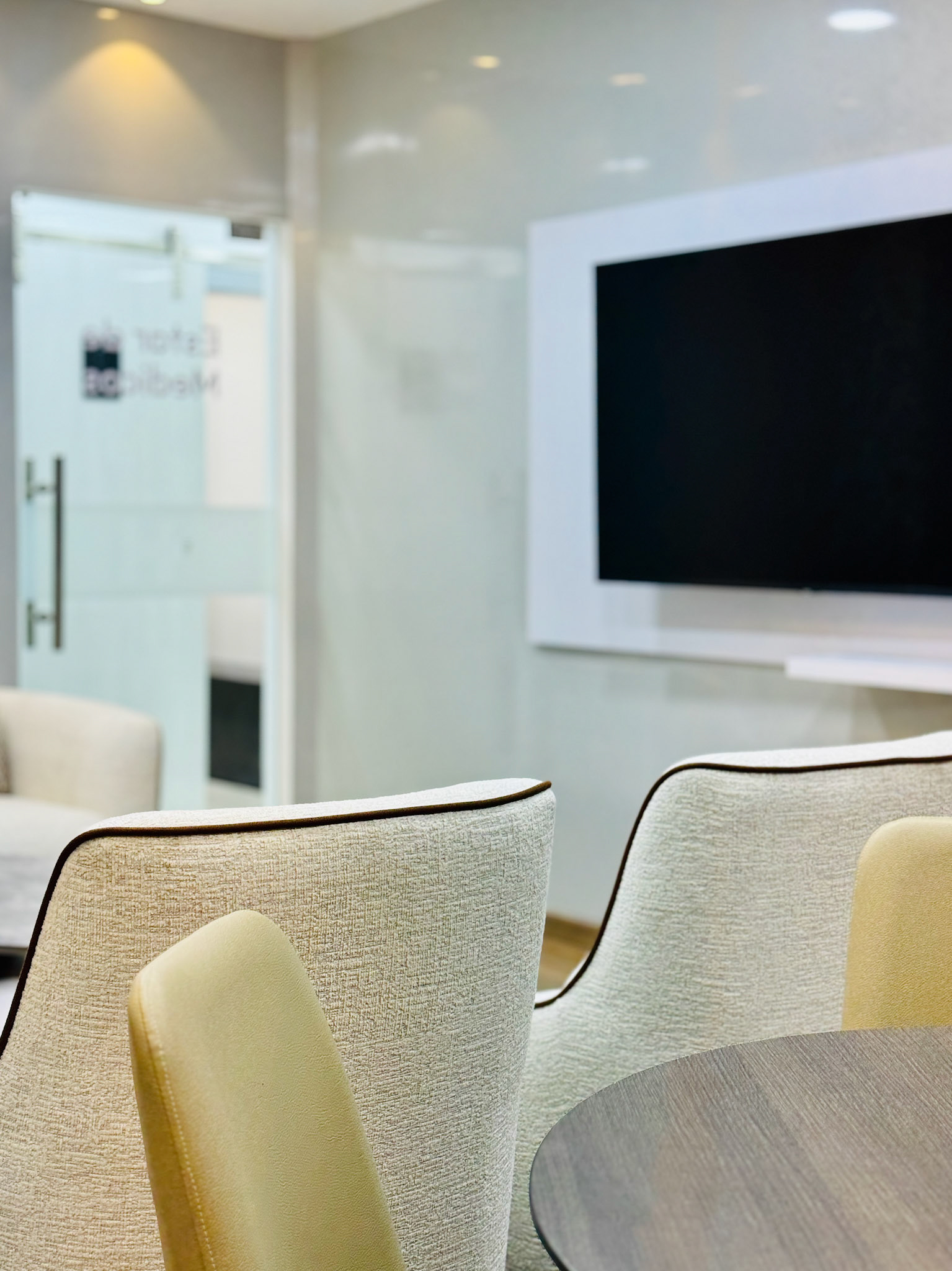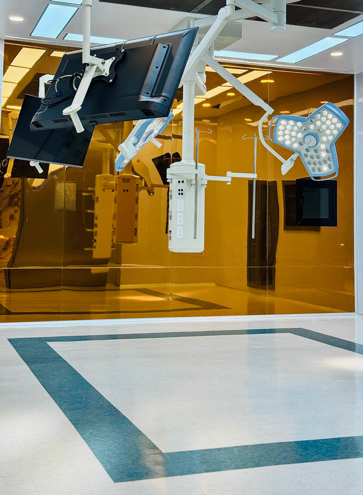 As the flagship department of the hospital, UQ represents the facility's Surgical Ward, engineered to accommodate high-complexity interventions. The architectural program comprises seven high-specification operating theaters, each offering over 25m² of surface area, supported by a dedicated recovery wing with eight beds and two postpartum stations. The design strategy departs from standard clinical aesthetics, employing a clean, minimalist base elevated by a sophisticated material palette. The interior features high-contrast wood and exotic stone detailing, while the operating theaters are distinguished by bold copper accents and a dynamic lighting scheme, solidifying UQ as the "main event" of the complex.