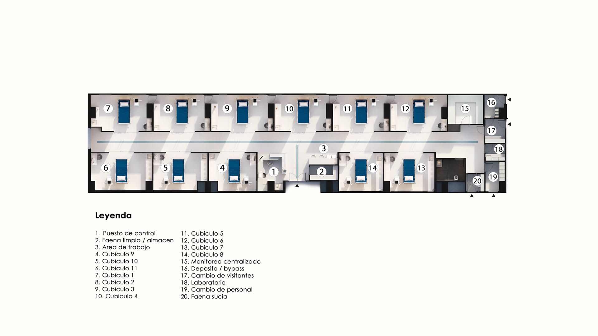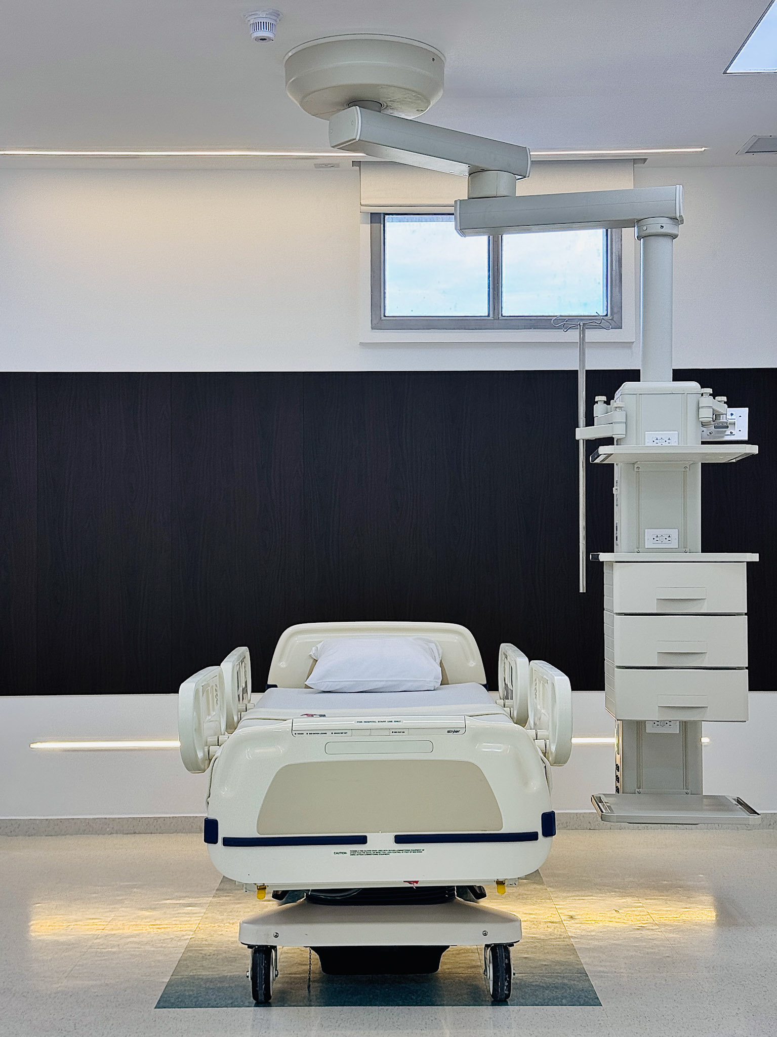 Located within the Hospital Clinicas del Este, UTI represents the development of a state-of-the-art Intensive Care Unit. The facility features 11 isolated patient suites integrated with advanced life-support and monitoring technologies. The programmatic layout is engineered for operational efficiency, incorporating essential support services such as a central monitoring hub, sample processing labs, and sterile waste management zones. Architecturally, the project focuses on the humanization of the clinical environment. By maximizing natural light intake and introducing warm wood finishes, the design mitigates the sterility typically associated with critical care, prioritizing patient well-being through environmental psychology.